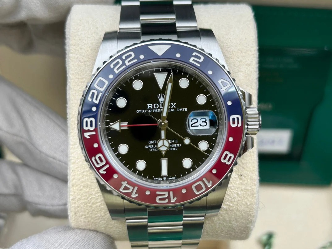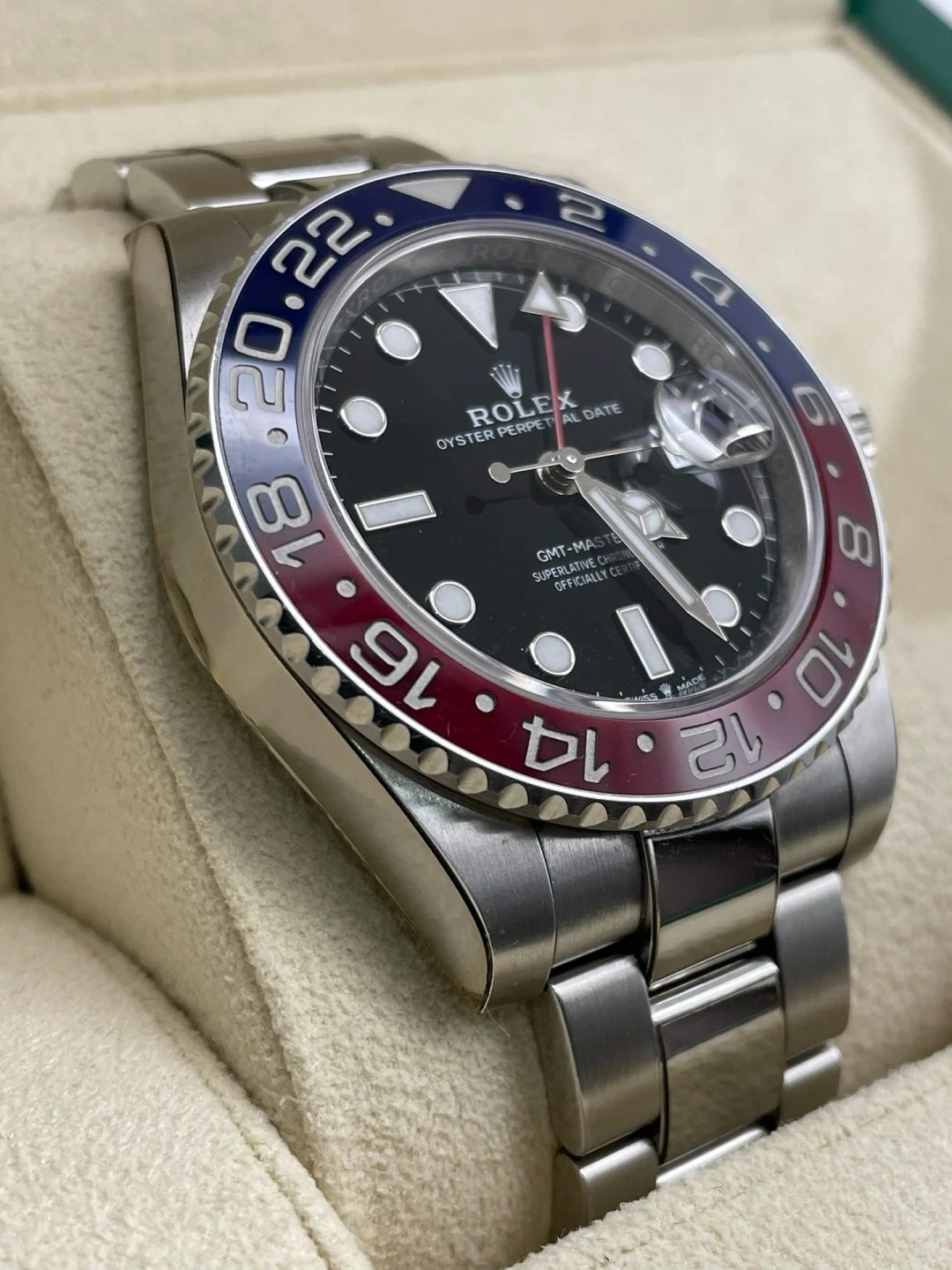 The Oyster Perpetual GMT-Master II is made of Oyster steel with a black dial and an Oyster bracelet. -m126710blro-0002 40mm