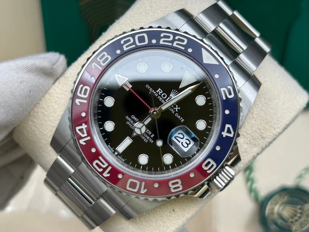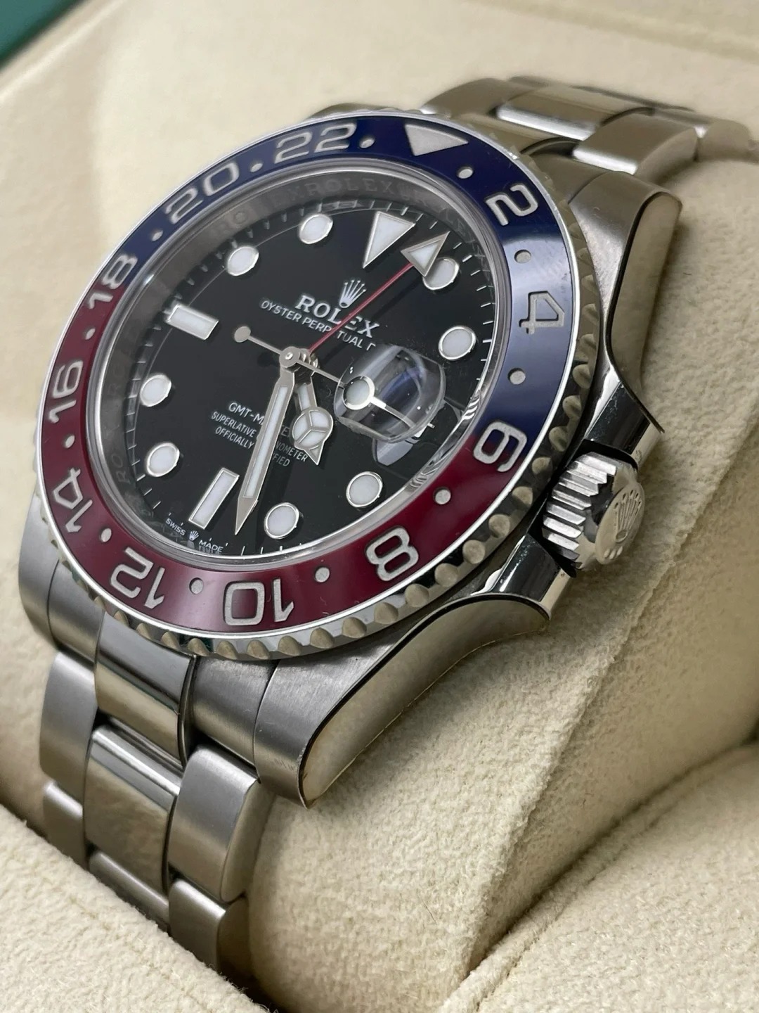 The Oyster Perpetual GMT-Master II in Oystersteel with a black dial and an Oyster bracelet.