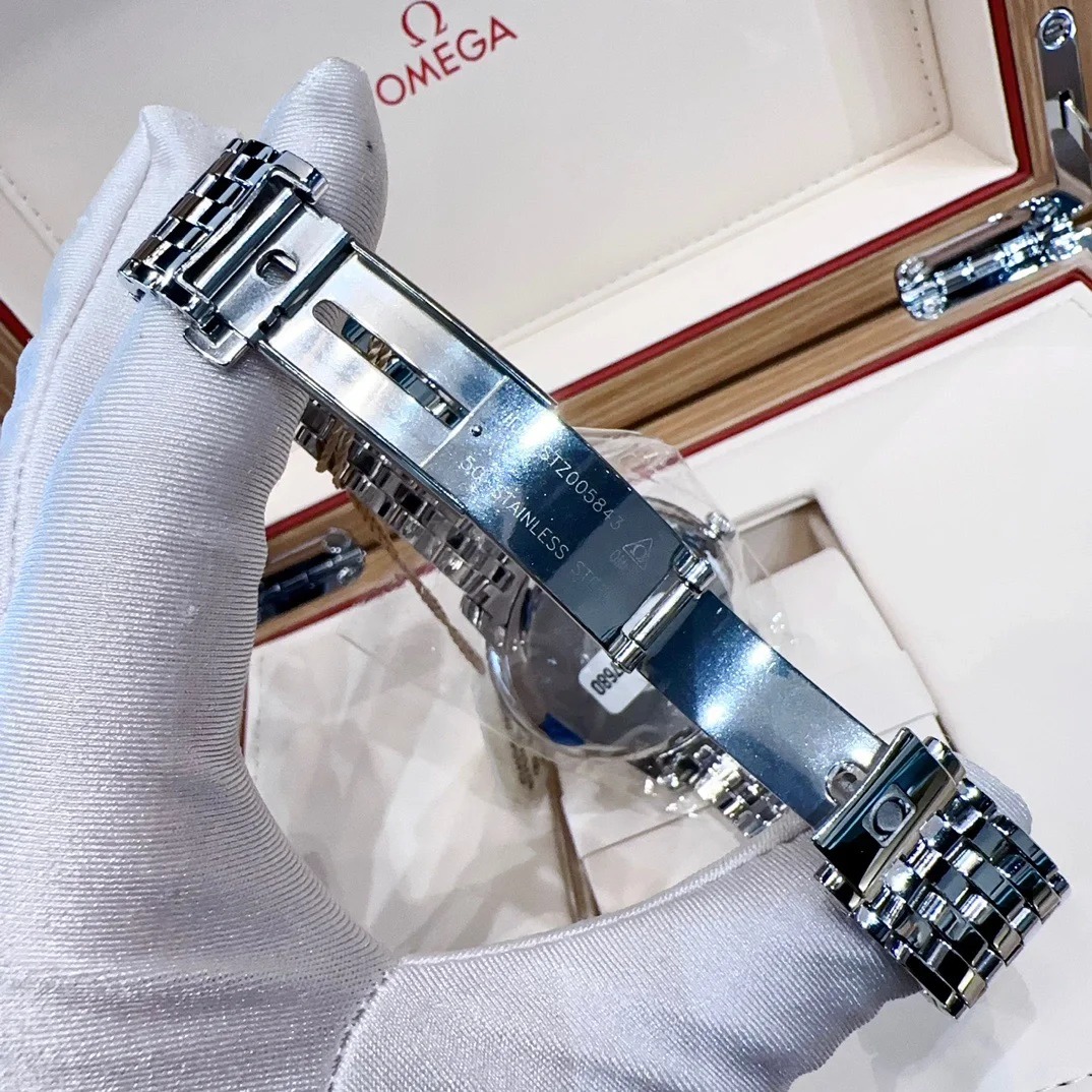 The 39.5 mm case features a stainless steel bezel and a scratch-resistant sapphire crystal, and is presented on an elegant stainless steel bracelet. At the heart of the watch is the OMEGA Co-Axial calibre 2500.