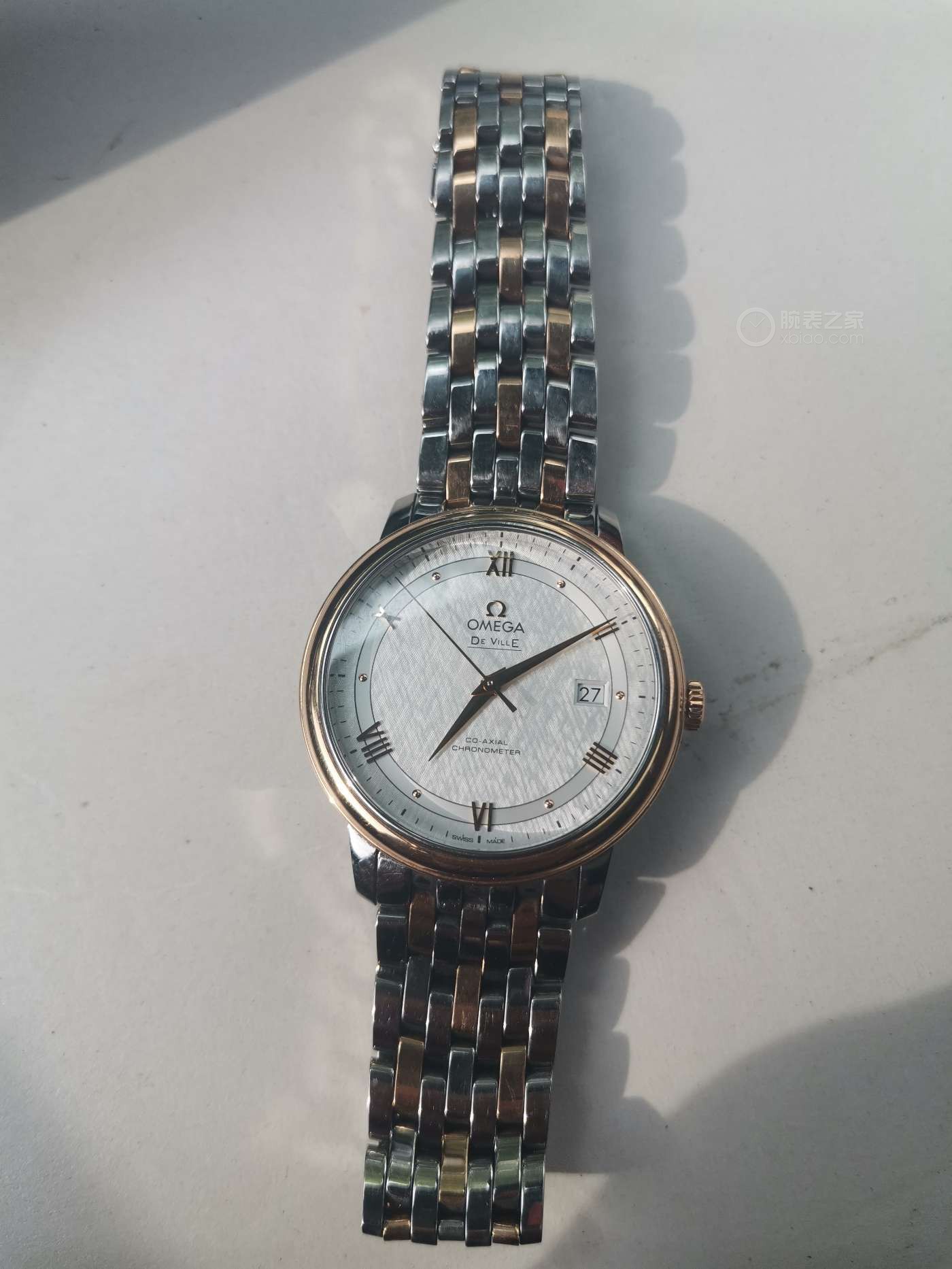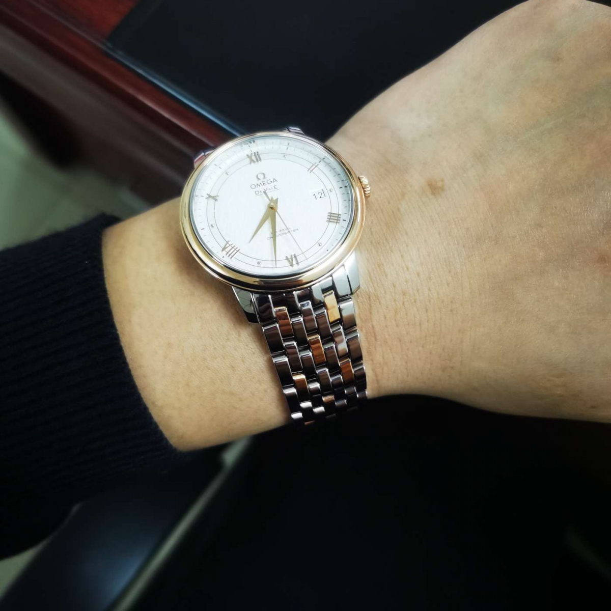 Presented on a stainless steel and 18-carat yellow gold bracelet, this De Ville Prestige watch is powered by the OMEGA Co-Axial calibre 2500.