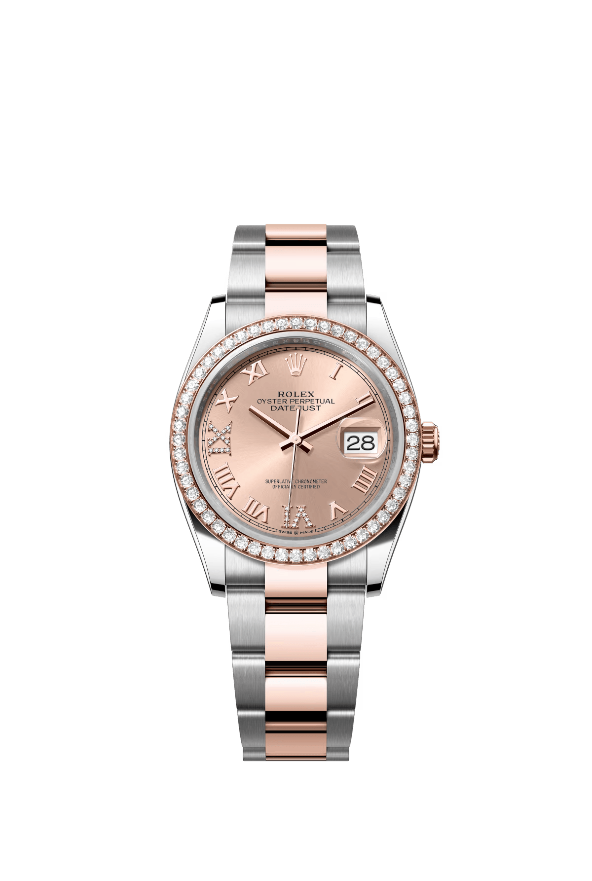 The Oyster Perpetual Datejust 36 is available in Everose gold and Oysteel with a rose gold-tone diamond-set dial and an Oyster bracelet. -m126281rbr-0016