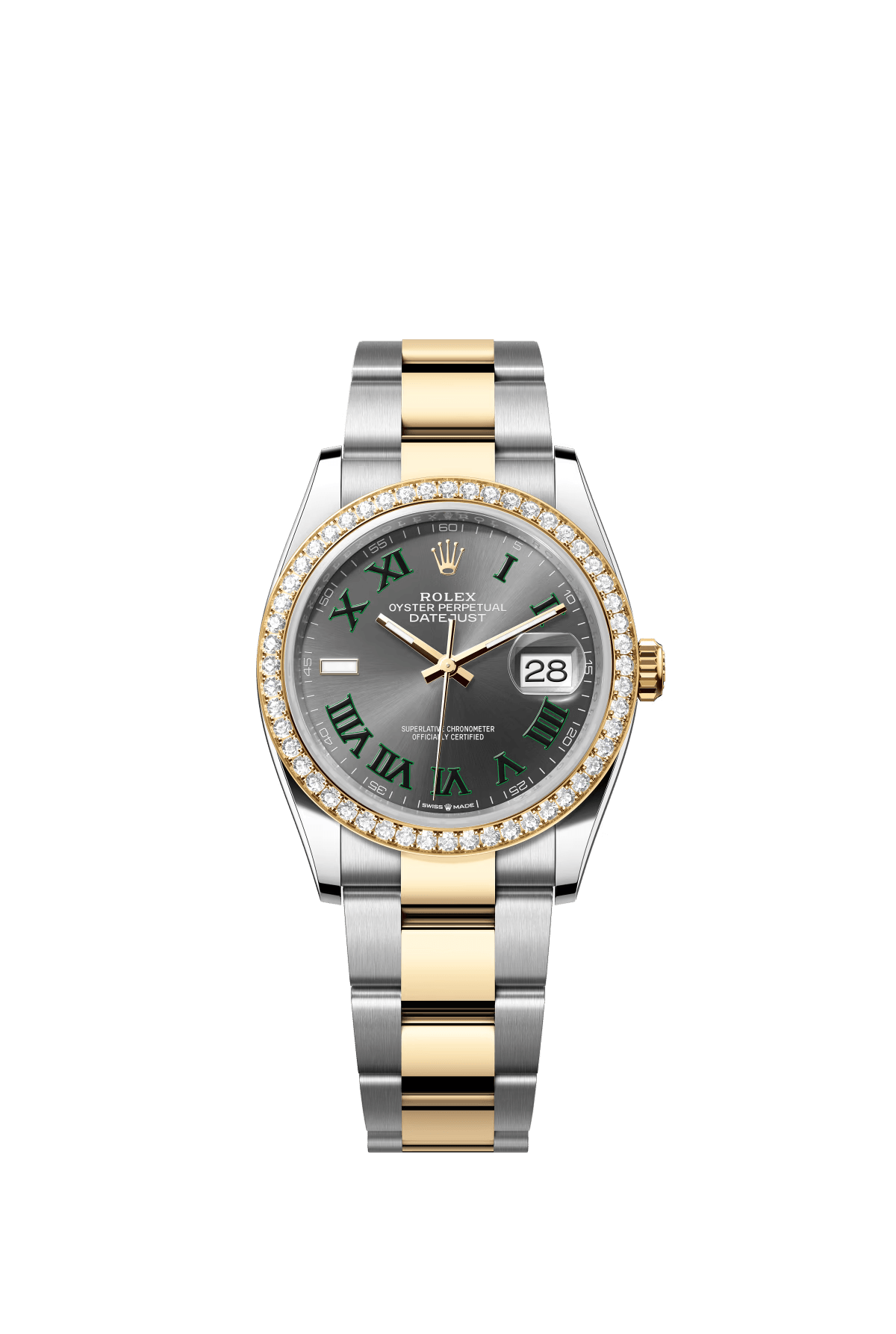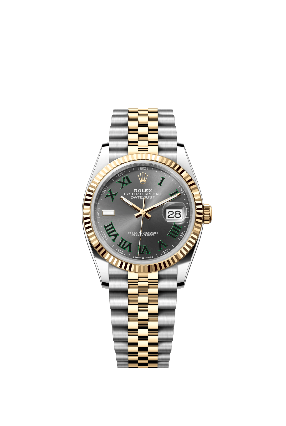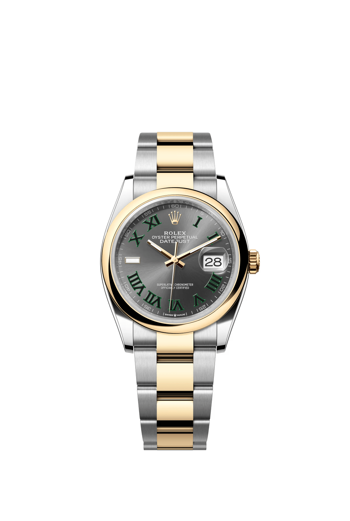 The Oyster Perpetual Datejust 36 in yellow gold and Oystersteel with a slate grey dial and an Oyster bracelet. -m126283rbr-0022