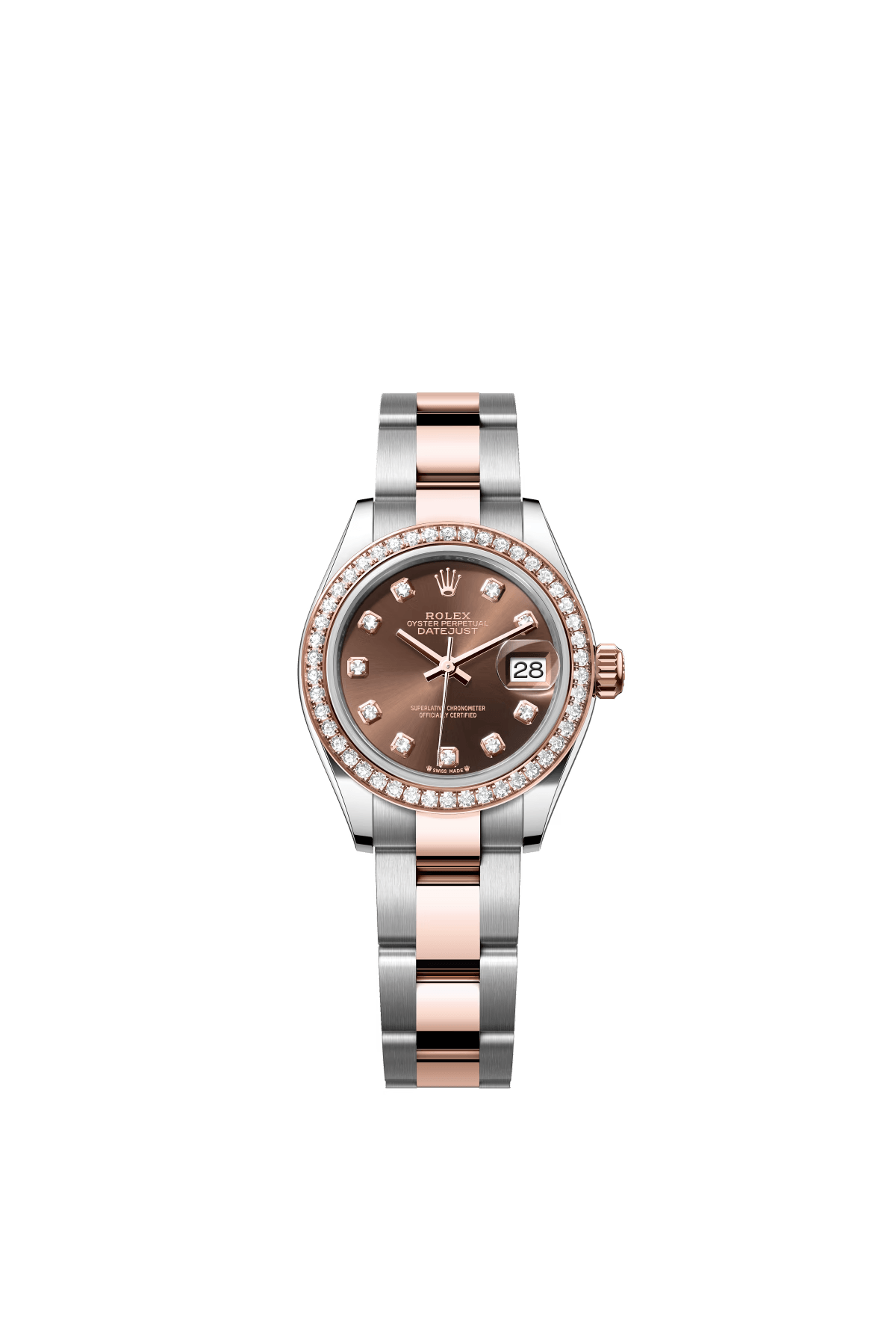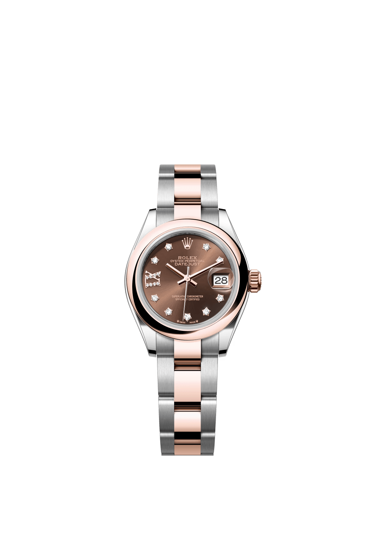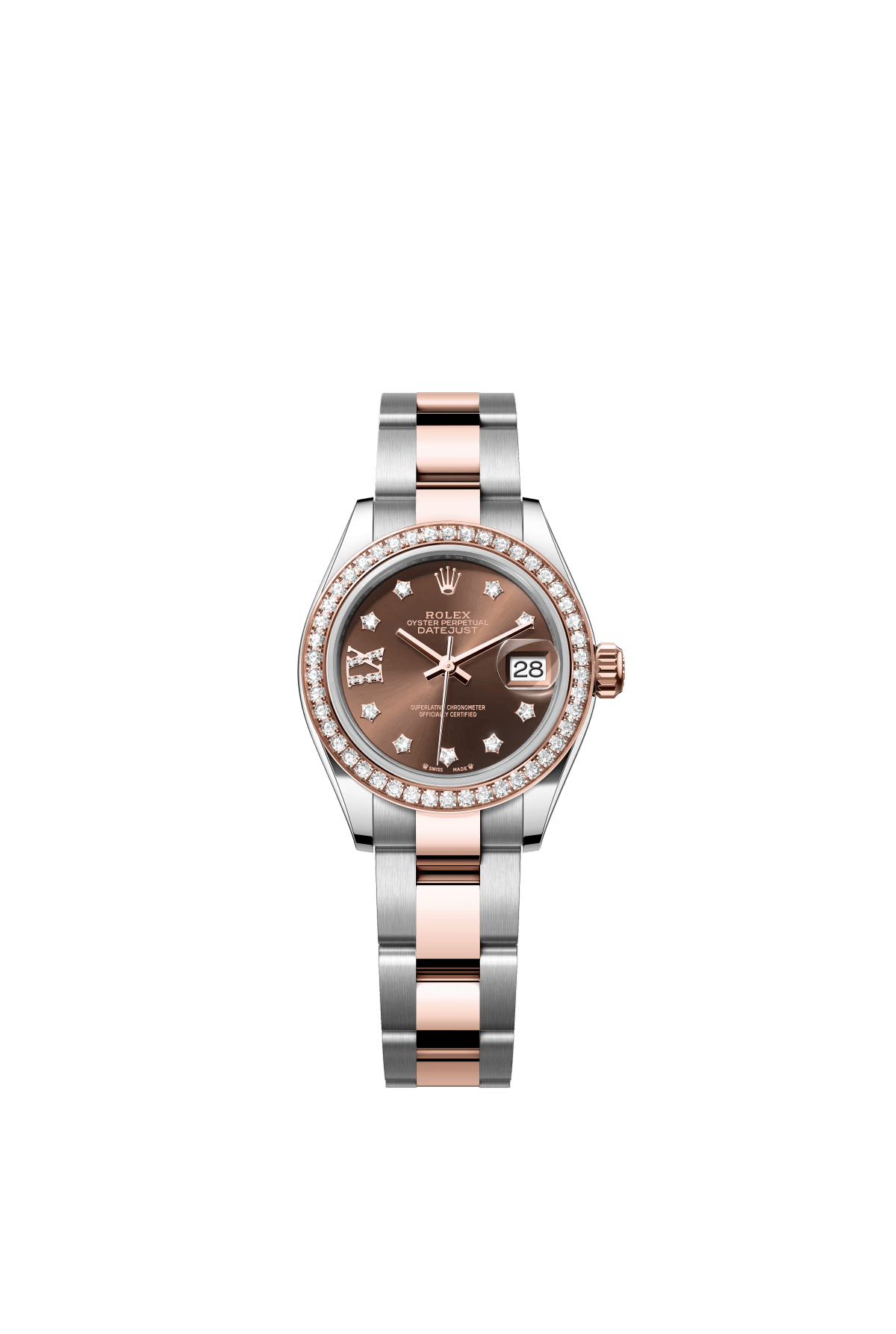 The Oyster Perpetual Lady-Datejust in Everose gold and Oystersteel with a chocolate-coloured diamond-set dial and an Oyster bracelet. -m279381rbr-0012 28mm