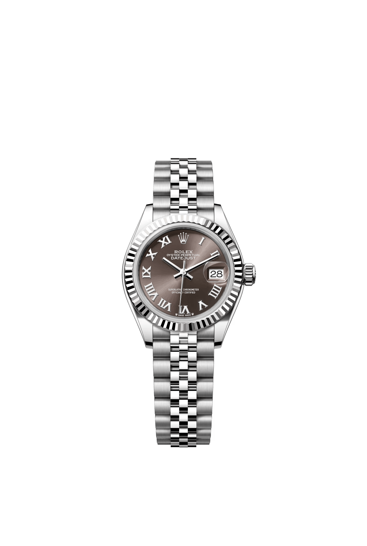 The Oyster Perpetual Lady-Datejust in white gold and Oystersteel with a dark grey dial and a Jubilee bracelet. -m279174-0011 28mm