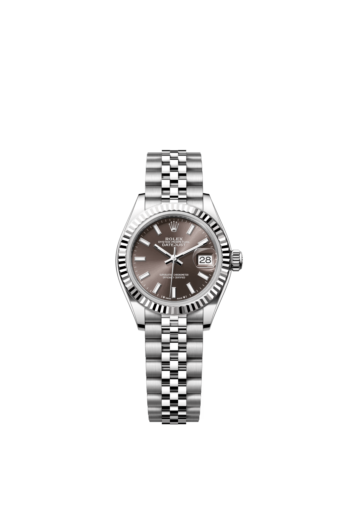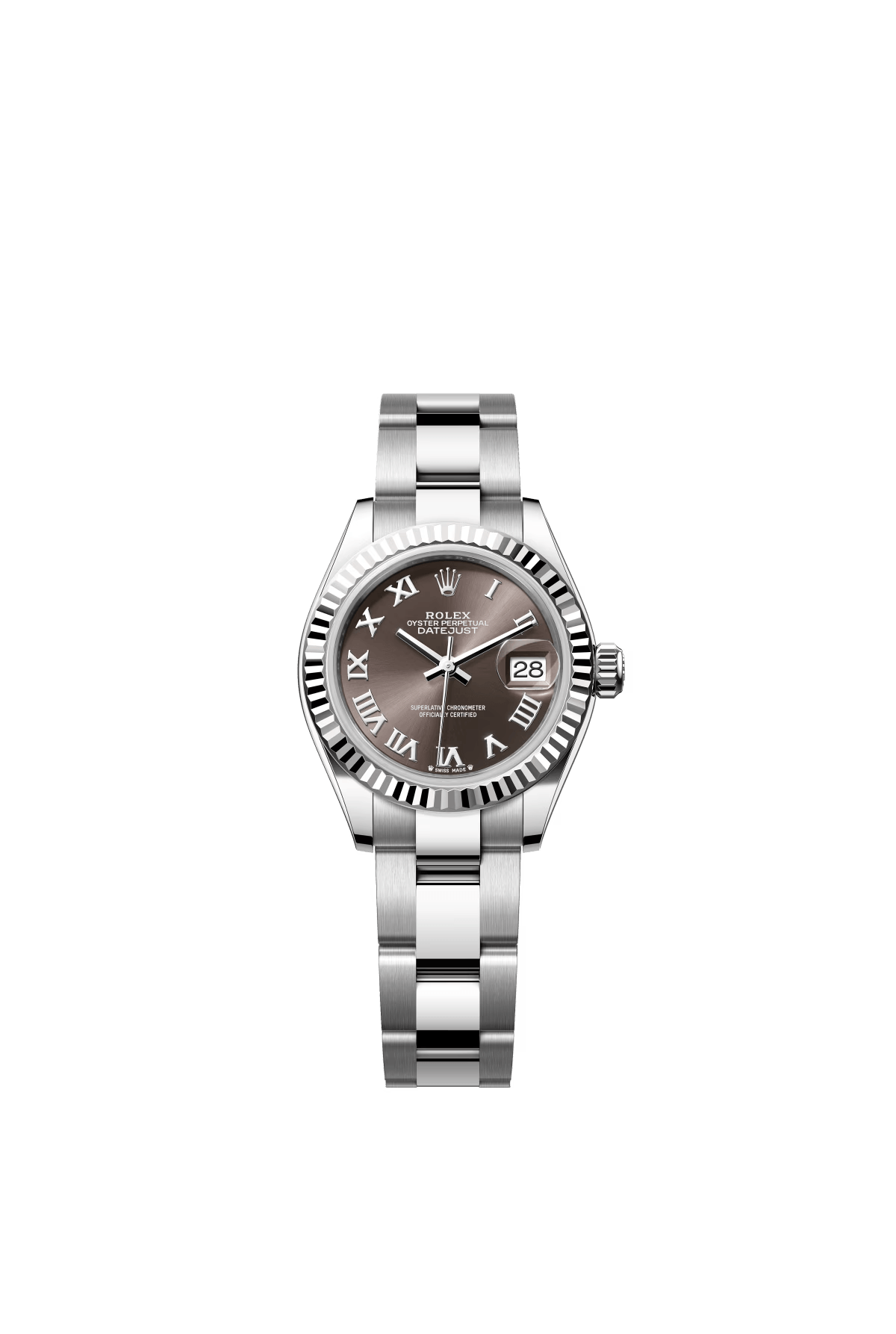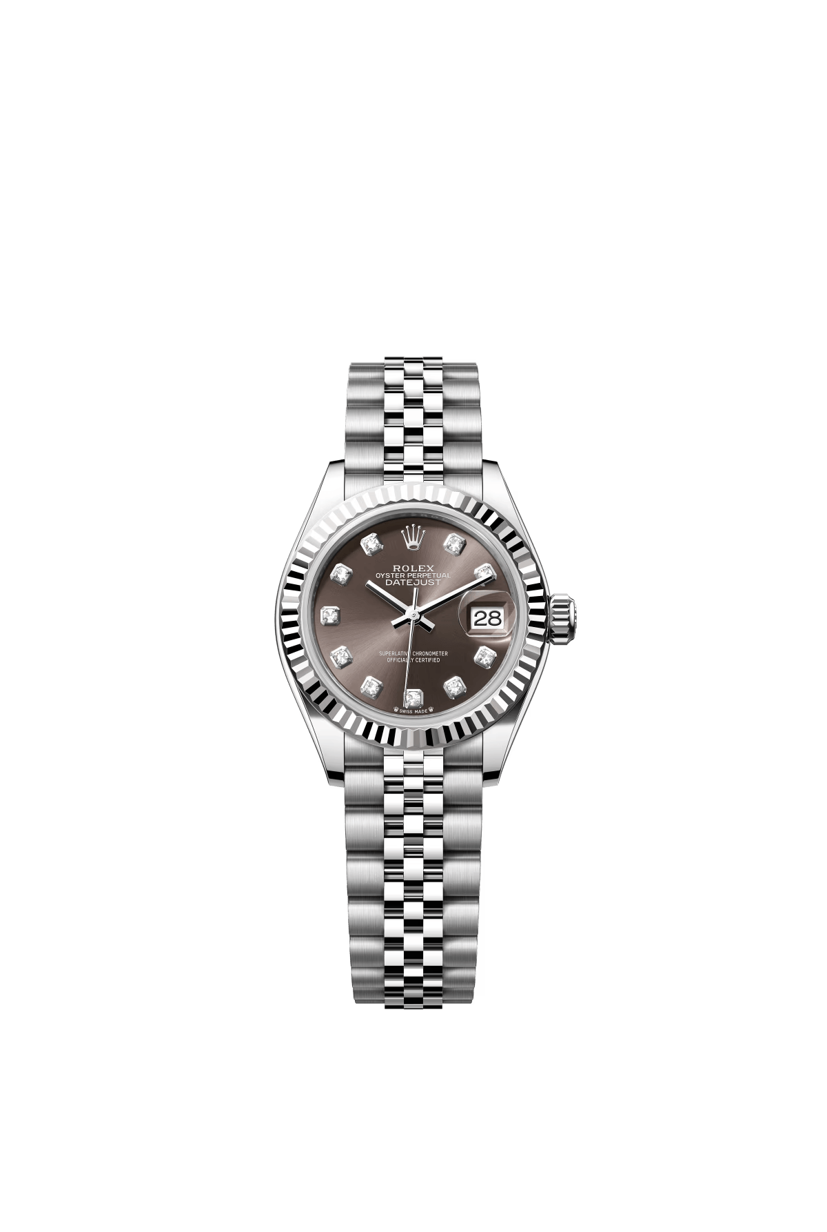 The Oyster Perpetual Lady-Datejust in white gold and Oystersteel with a diamond-set dark grey dial and an Oyster bracelet. -m279174-0016 28mm