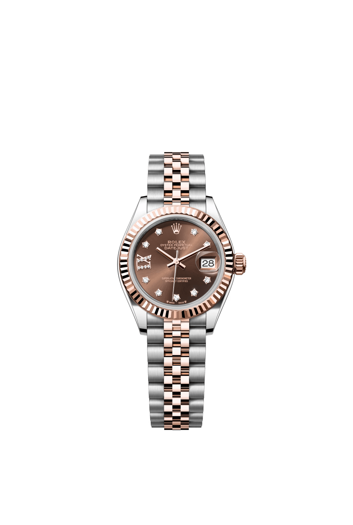 The Oyster Perpetual Lady-Datejust in Everose gold and Oystersteel with a chocolate-coloured diamond-set dial and a Jubilee bracelet. -m279381rbr-0011 28mm