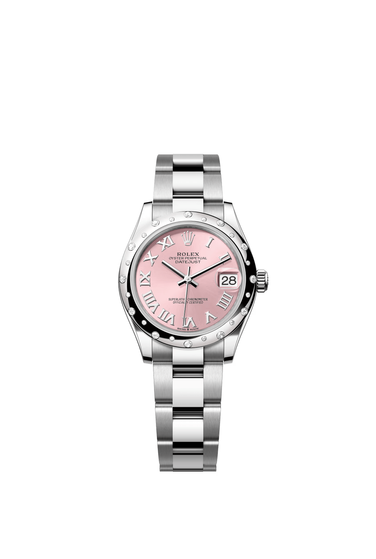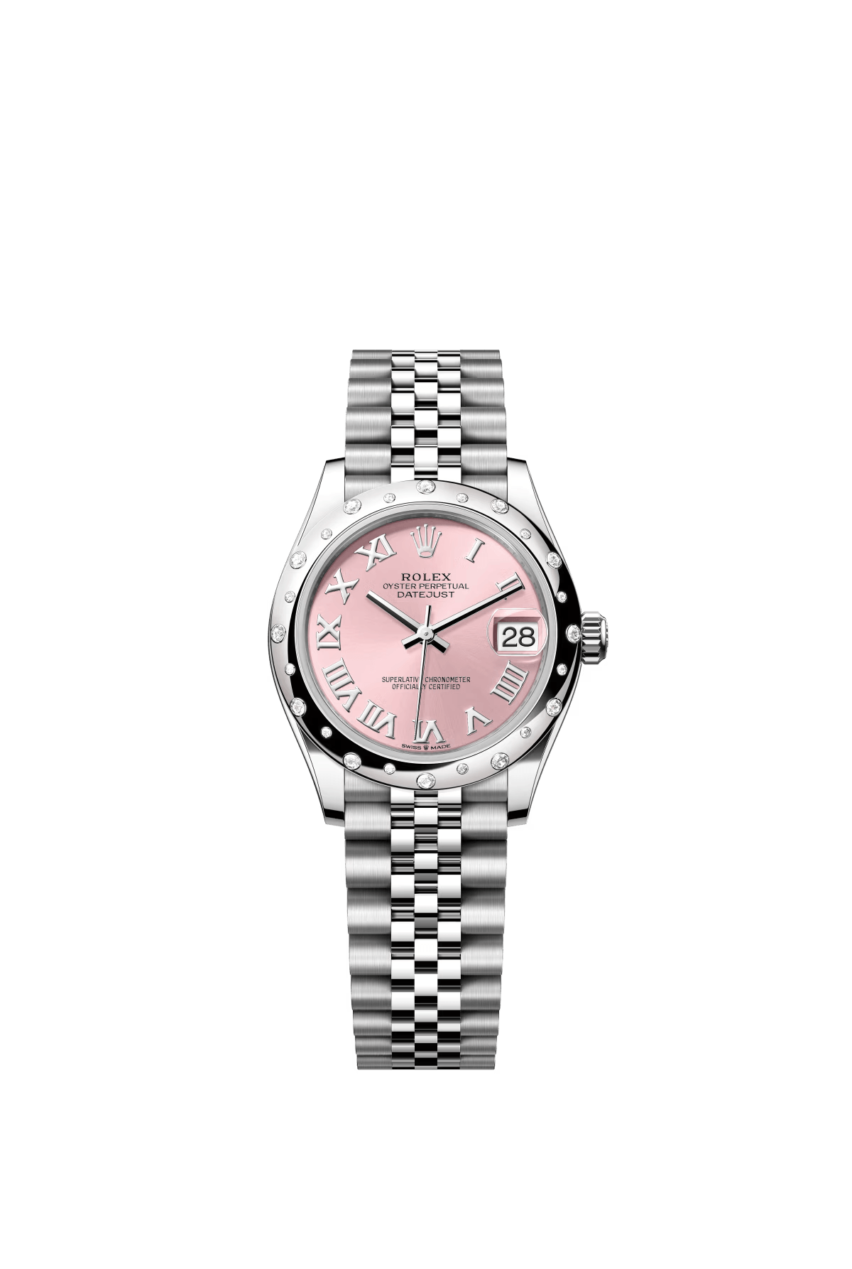 The Oyster Perpetual Datejust 31 is available in white gold and Oystersteel with a pink diamond-set dial and an Oyster bracelet. -m278274-0031