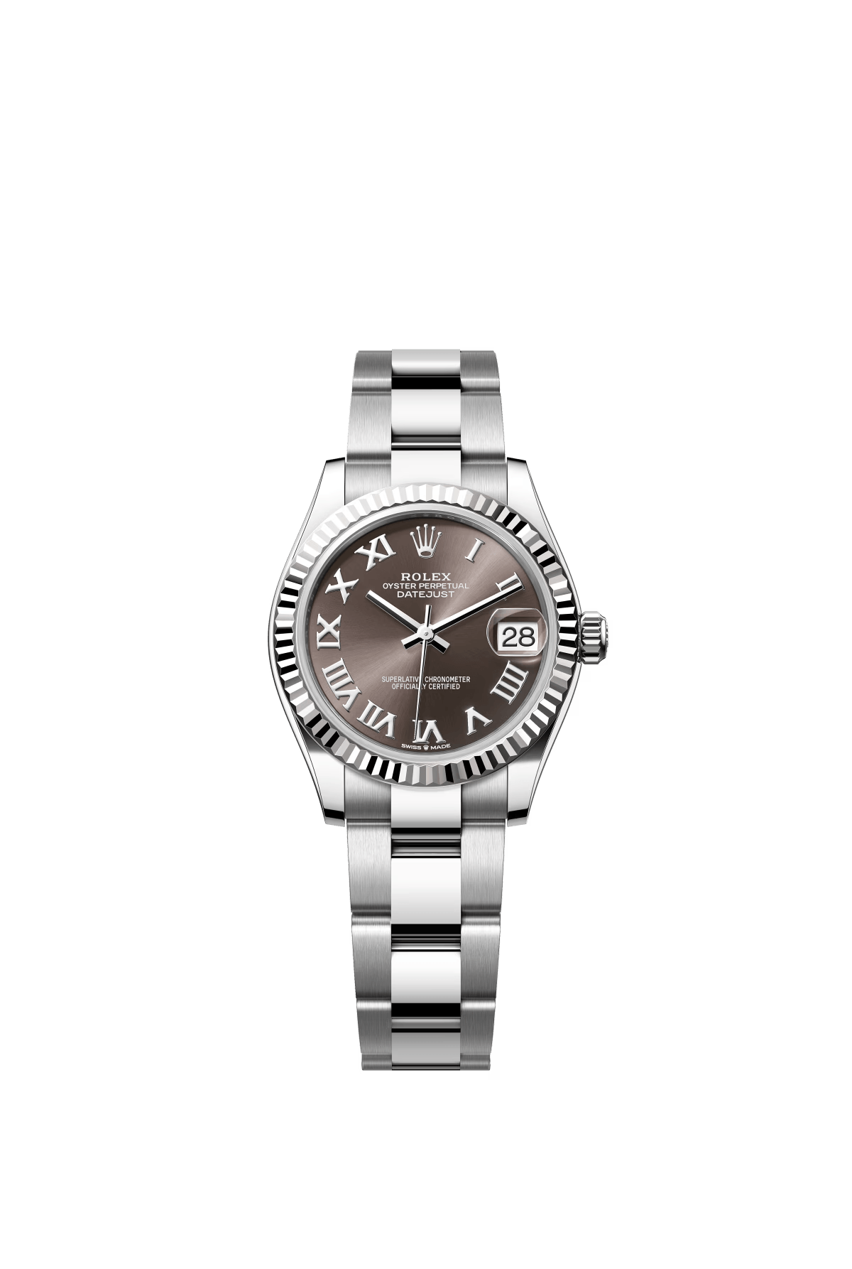 The Oyster Perpetual Datejust 31 is available in white gold and Oystersteel with a dark grey dial and an Oyster bracelet. -m278274-0015