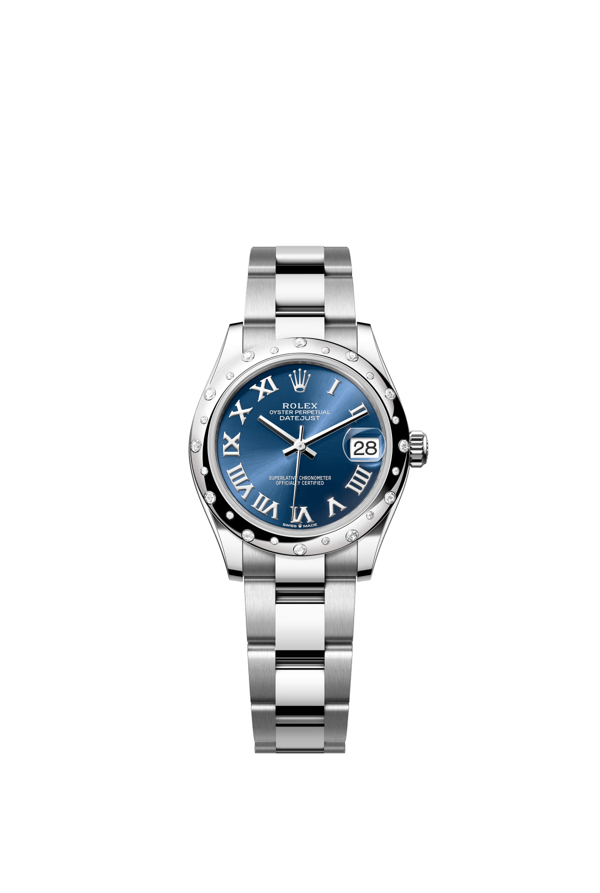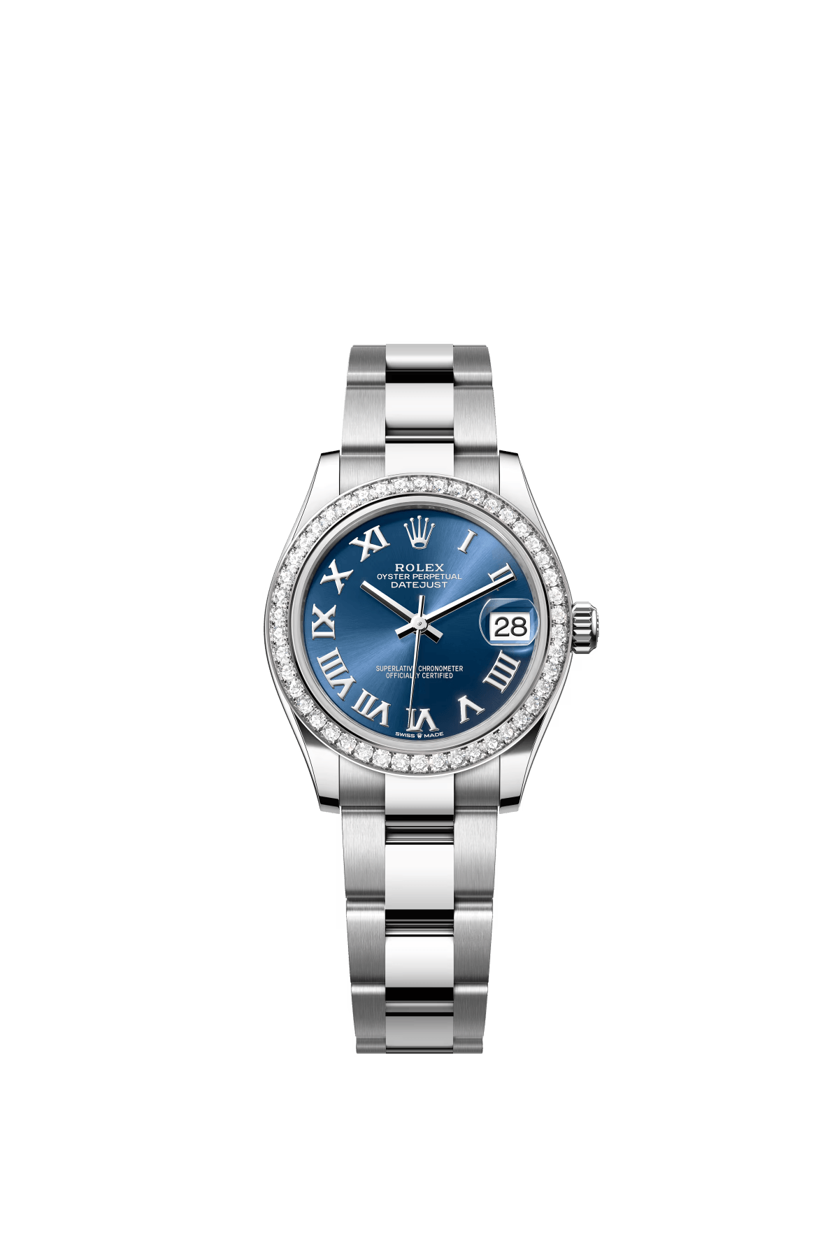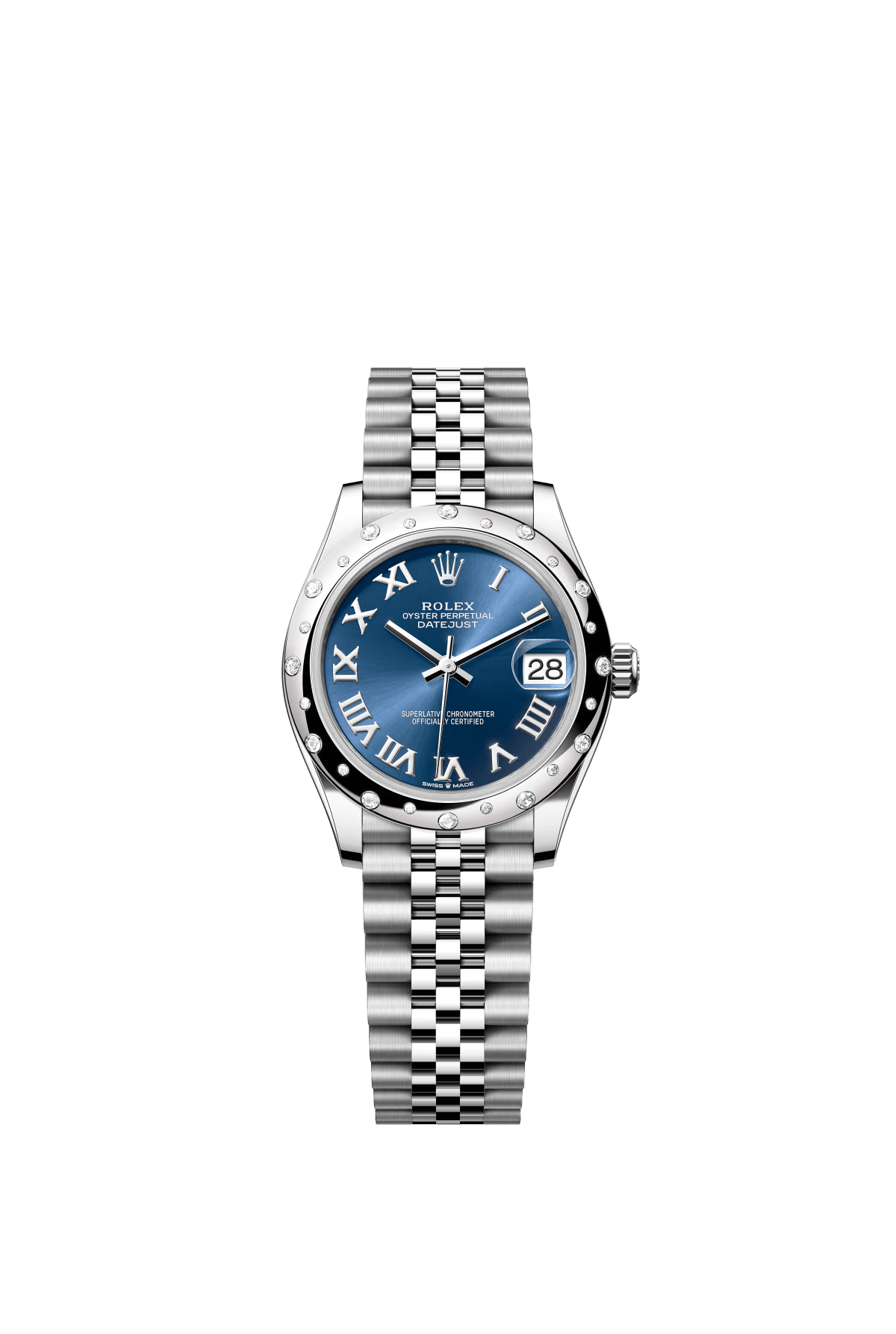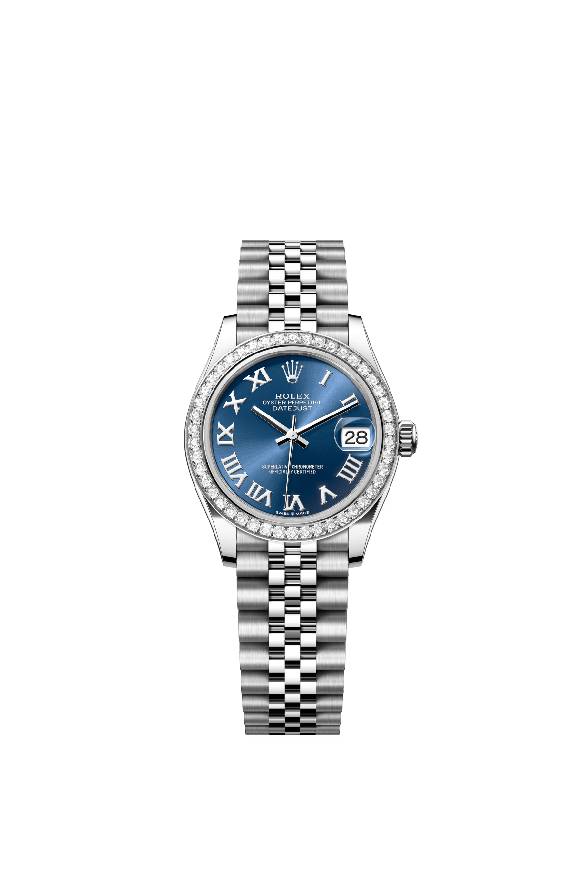 The Oyster Perpetual Datejust 31 is available in white gold and Oystersteel with a bright blue dial and an Oyster bracelet. -m278274-0033