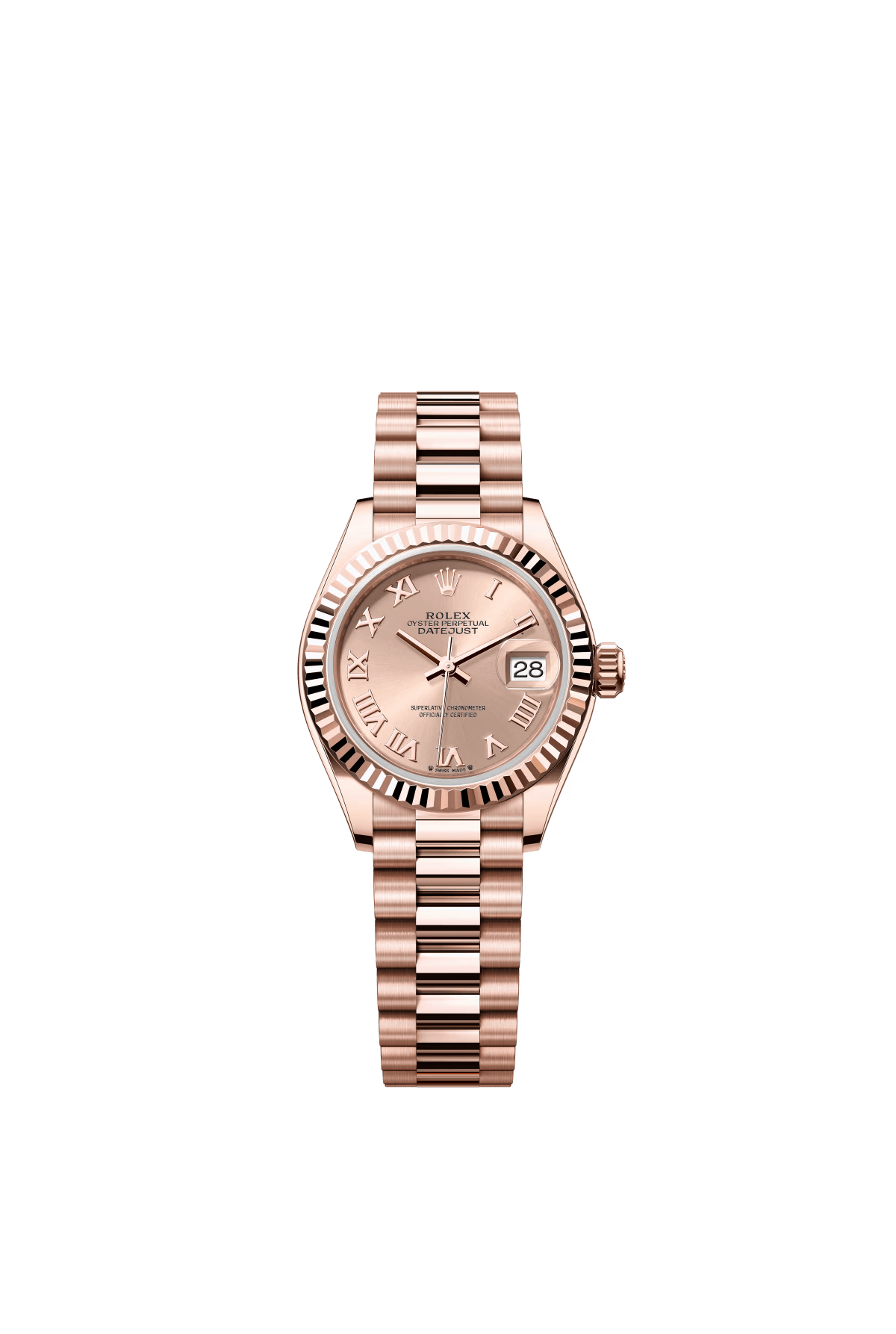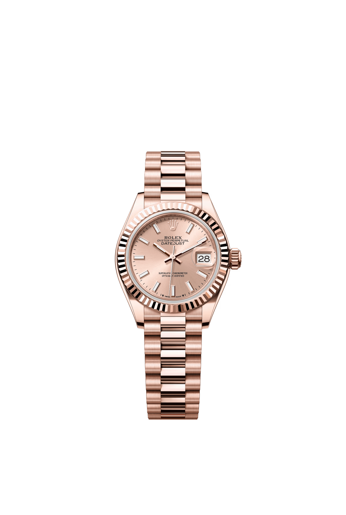 The Oyster Perpetual Lady-Datejust in 18-carat Everose gold with a rose gold-tone dial and President bracelet. -m279135rbr-0025 28mm