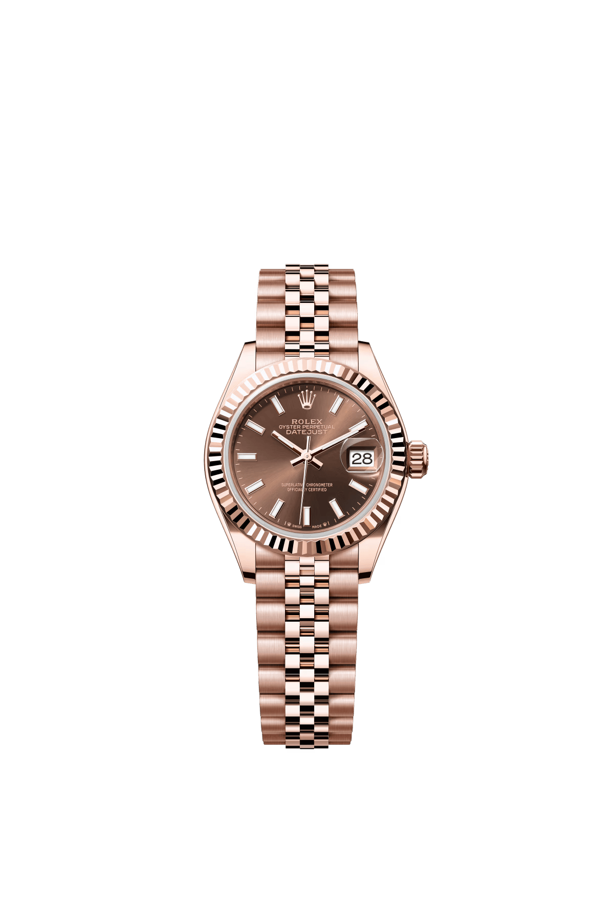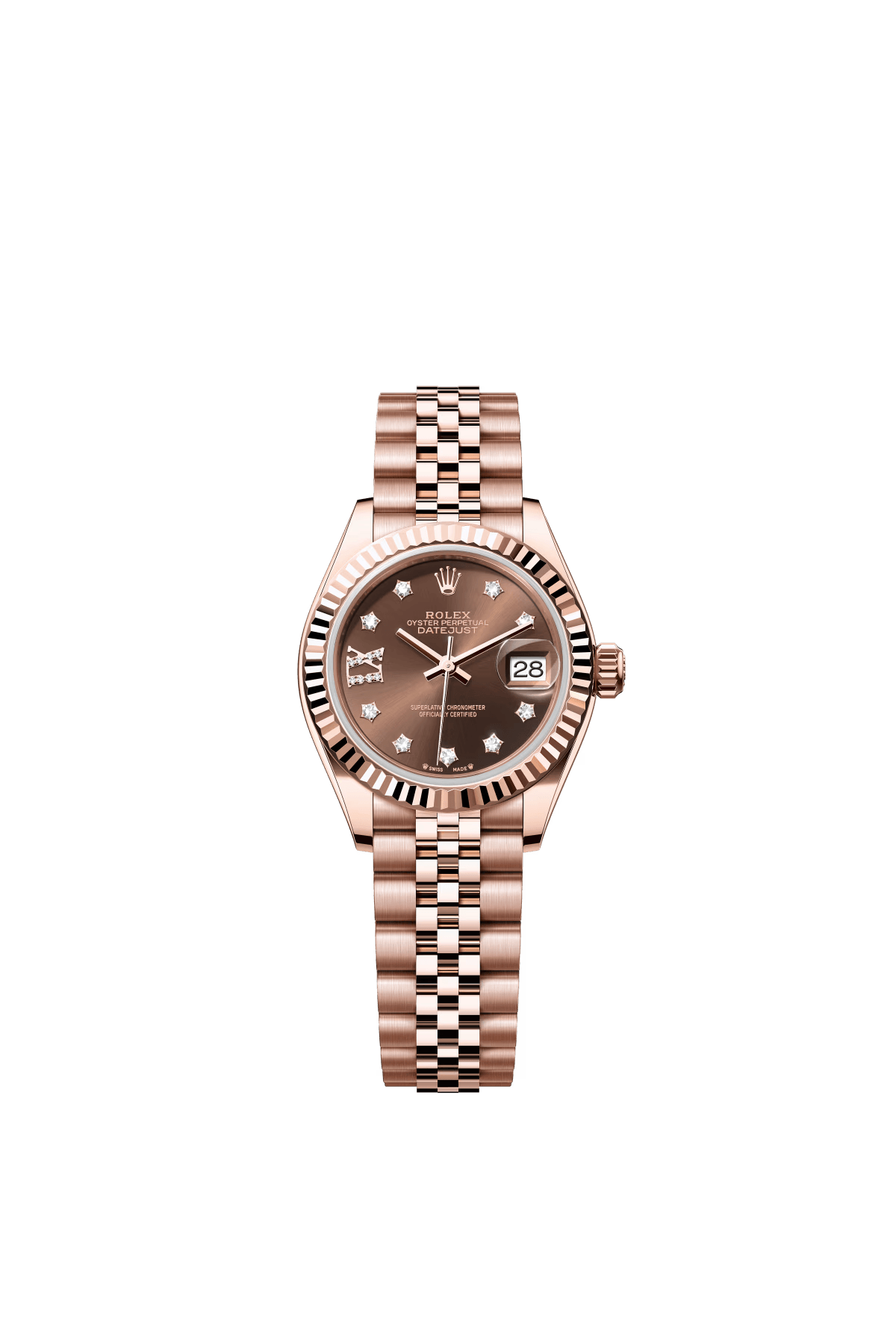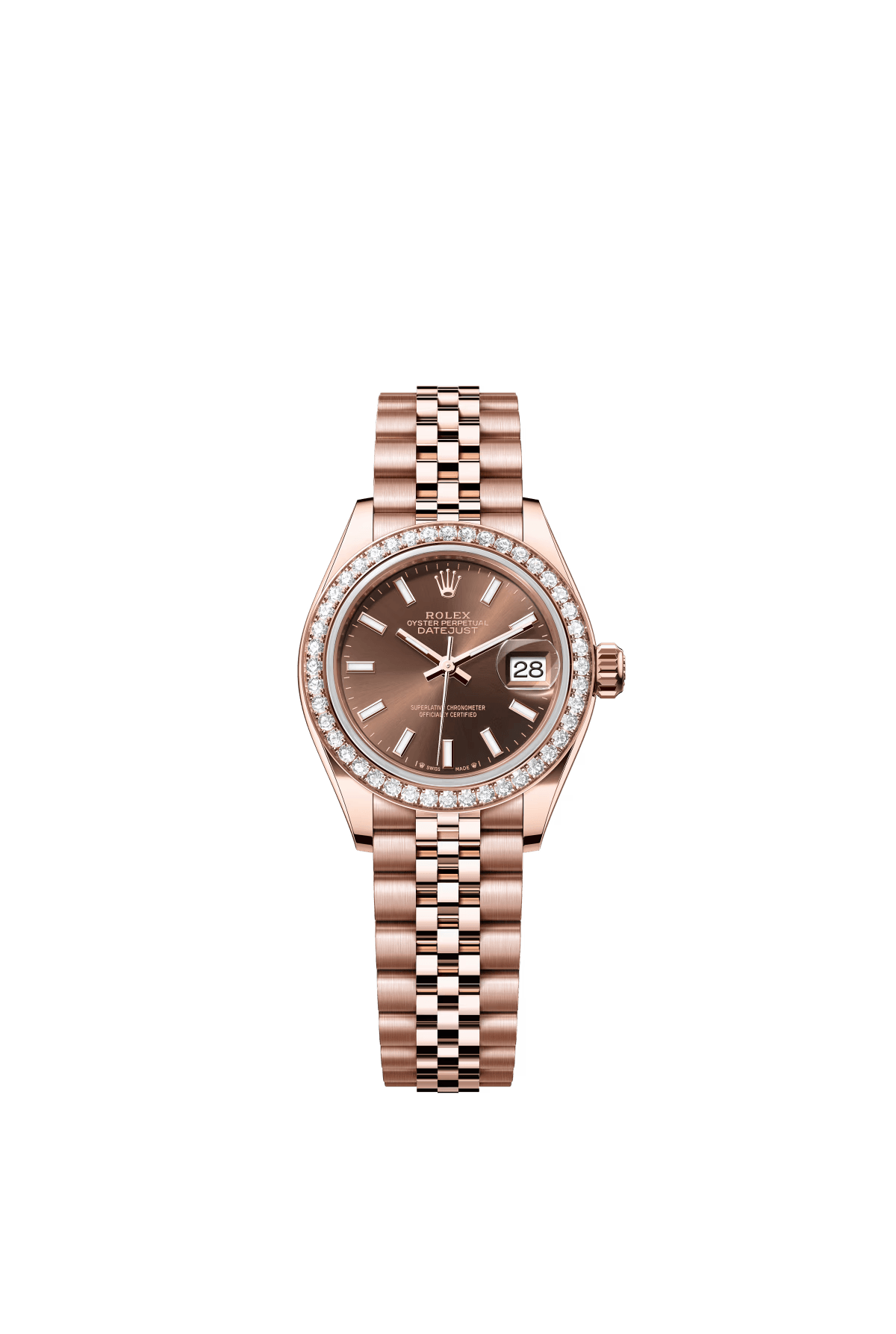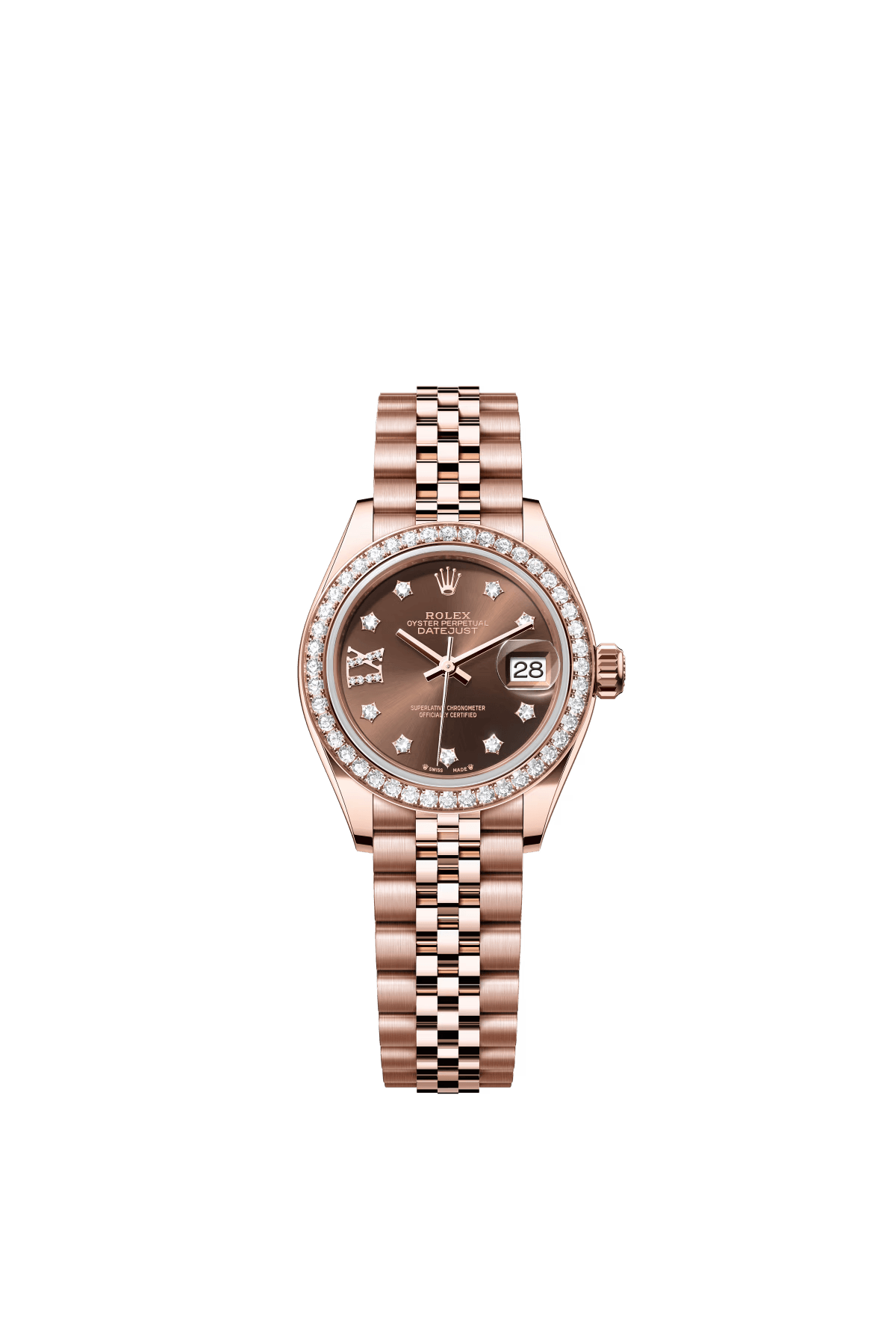 The Oyster Perpetual Lady-Datejust in 18-carat Everose gold with a chocolate-coloured diamond-set dial and a Jubilee bracelet. -m279135rbr-0002 28mm