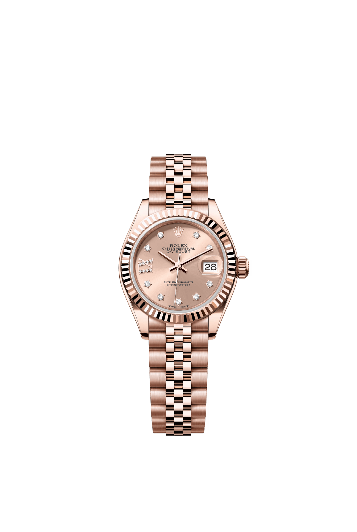The Oyster Perpetual Lady-Datejust in 18K Everose gold with a rose gold-tone diamond-set dial and a Jubilee bracelet. -m279175-0030 28mm