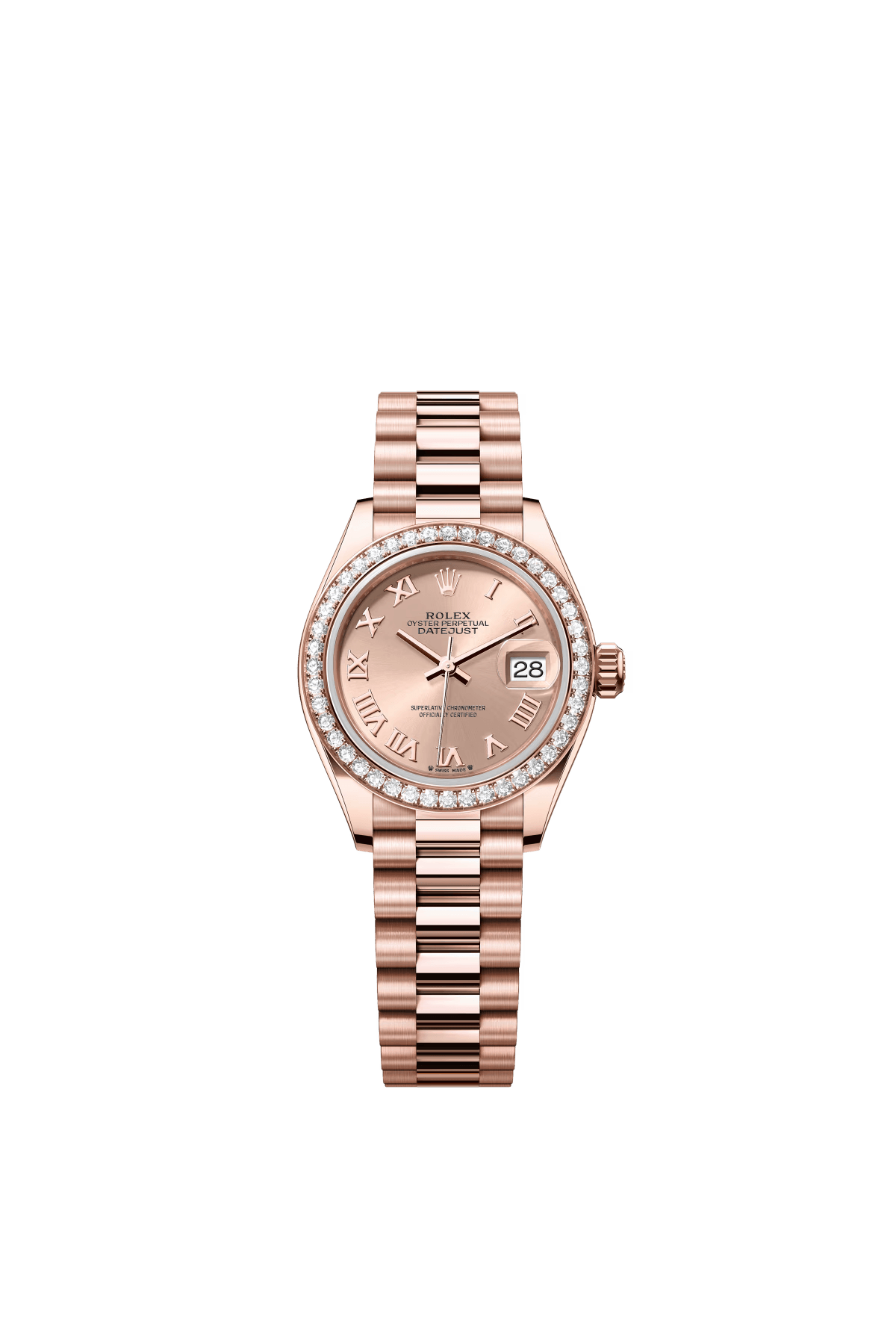 The Oyster Perpetual Lady-Datejust in 18-carat Everose gold with a rose gold-toned diamond-set dial and a President bracelet. -m279135rbr-0029 28mm