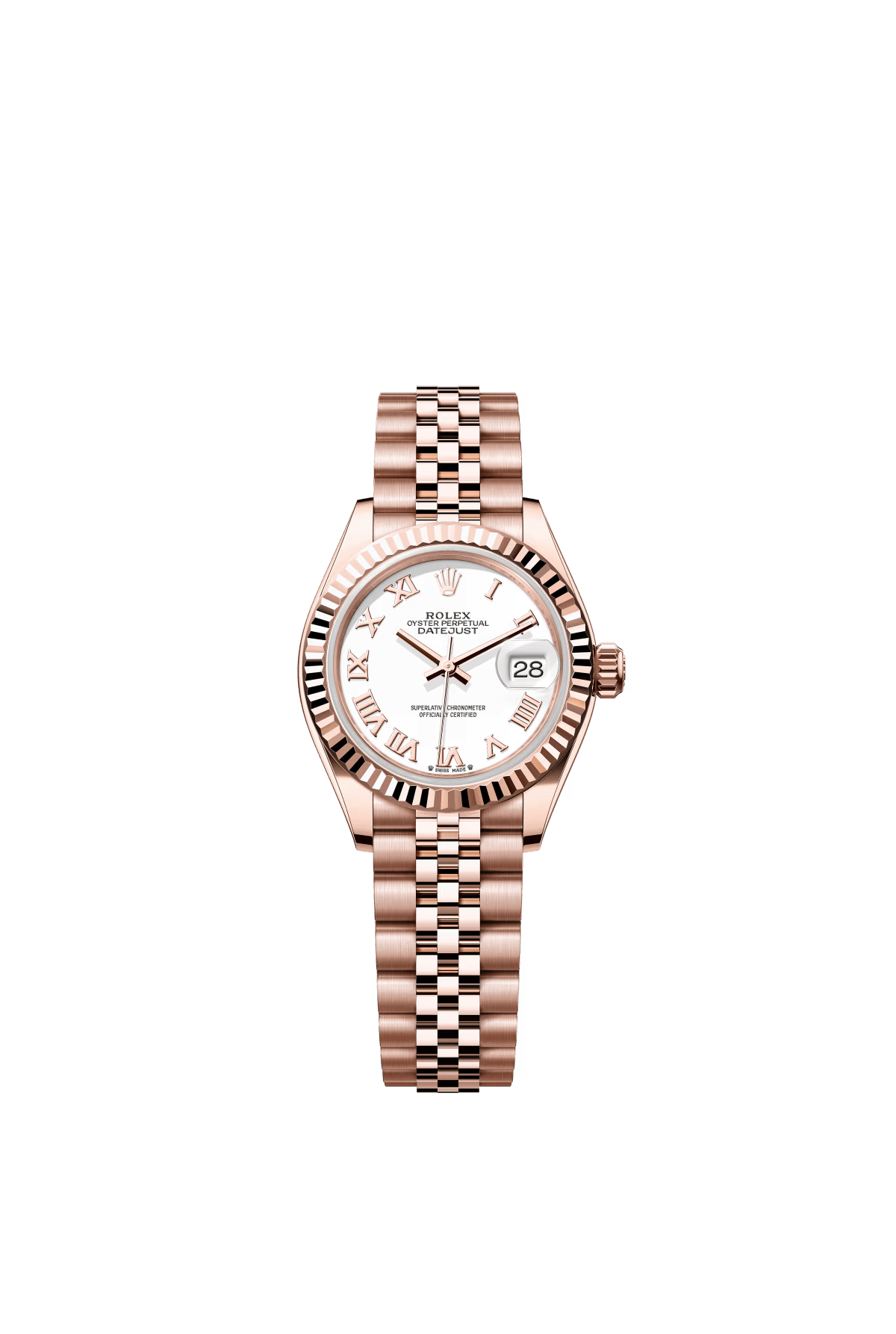 The Oyster Perpetual Lady-Datejust in 18 ct Everose gold with a white dial and Jubilee bracelet. -m279135rbr-0024 28mm