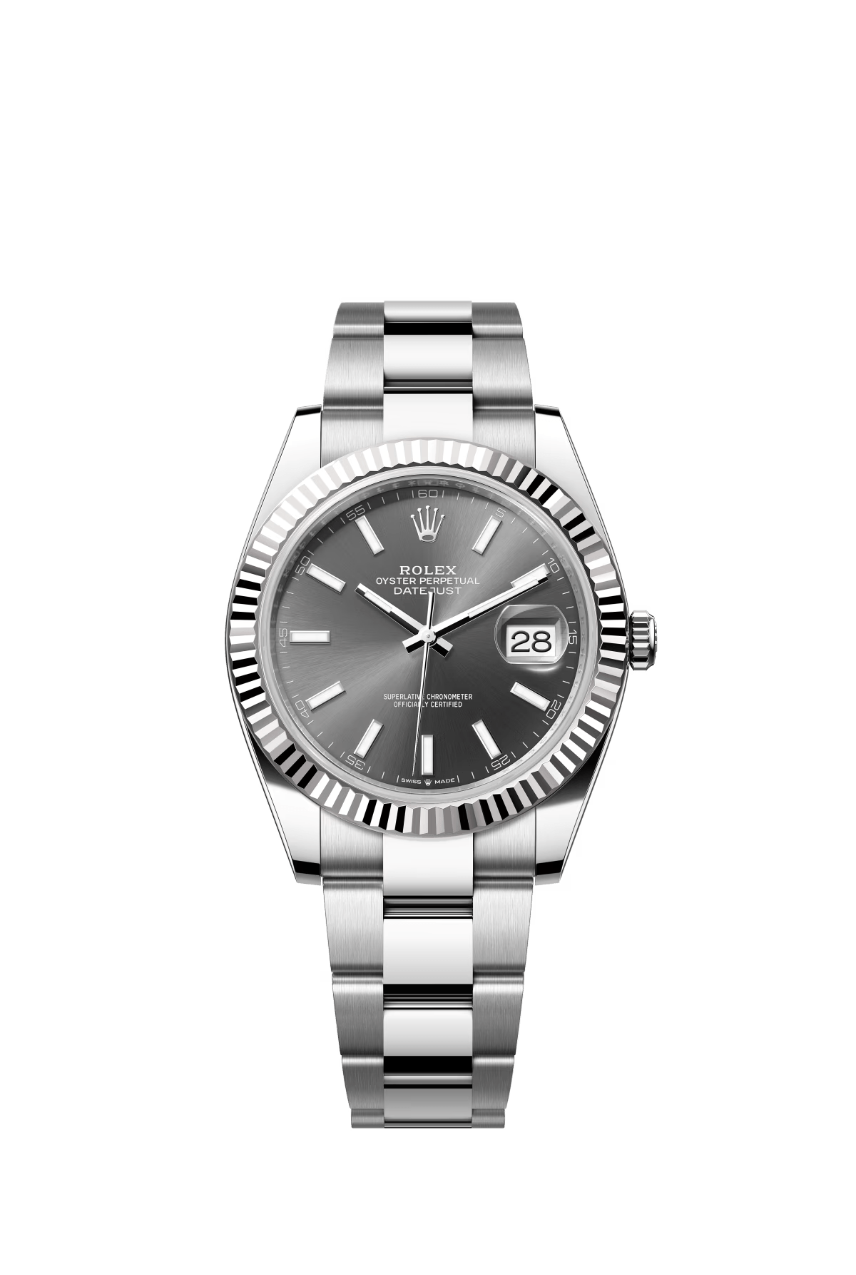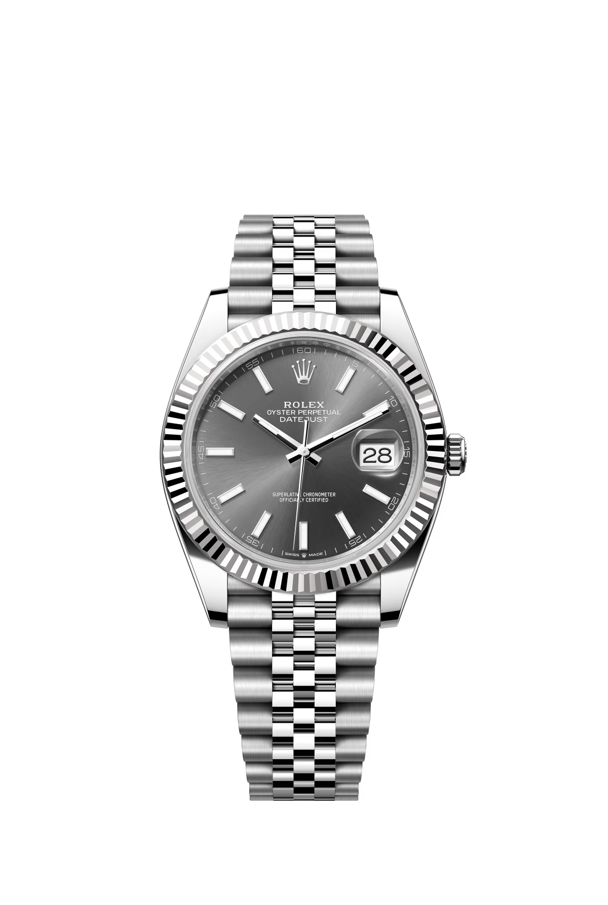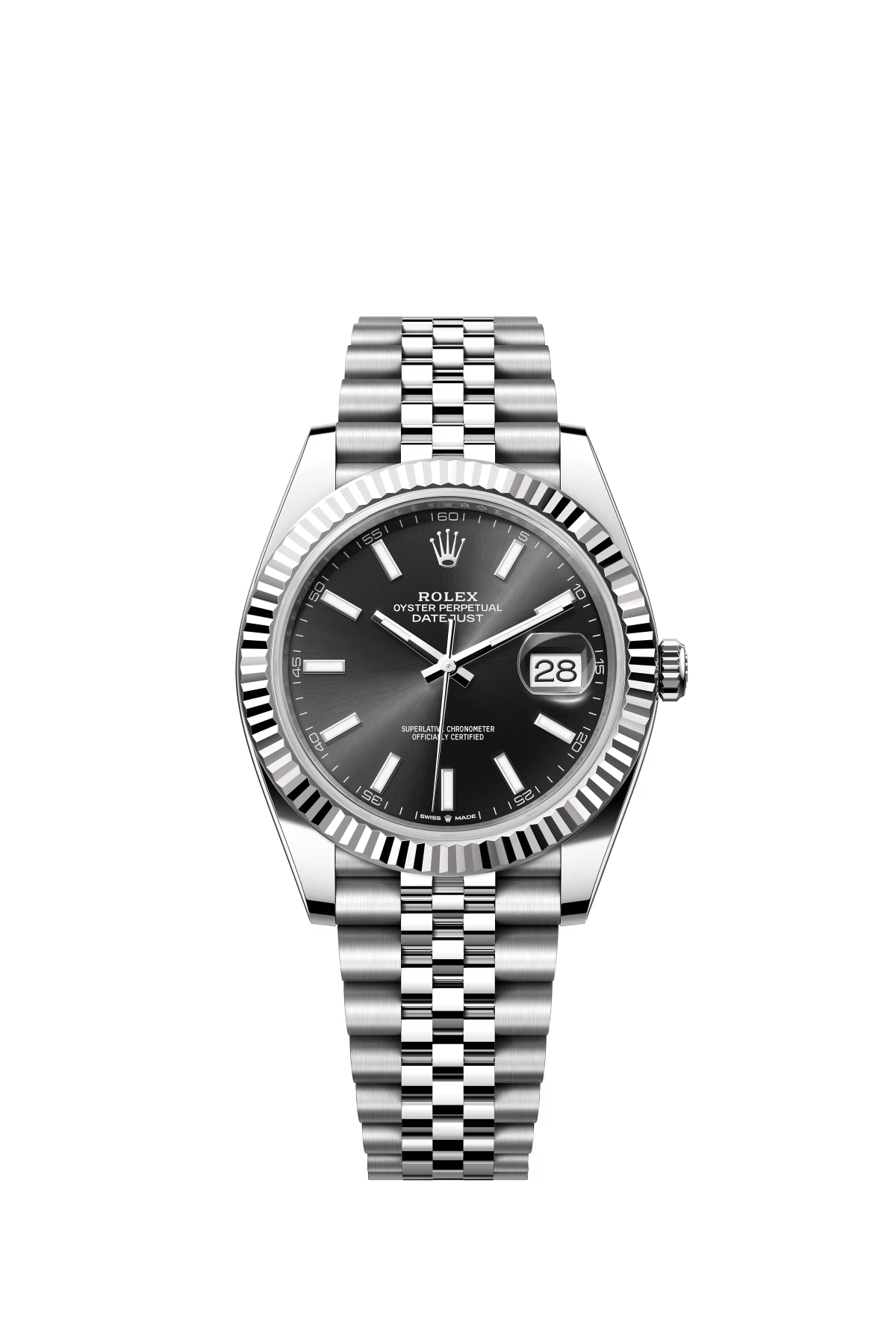 The Oyster Perpetual Datejust 41 is available in white gold and Oystersteel with a slate-grey dial and an Oyster bracelet. -m126334-0021