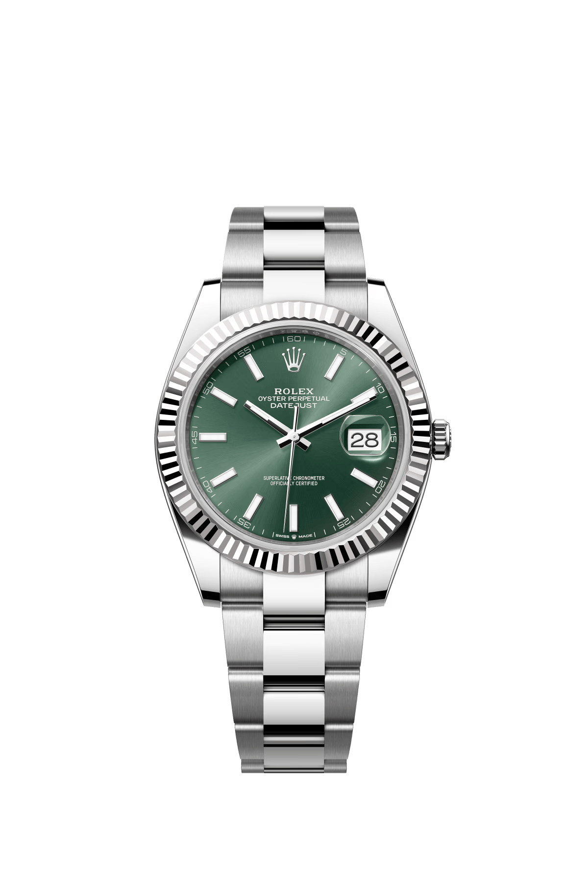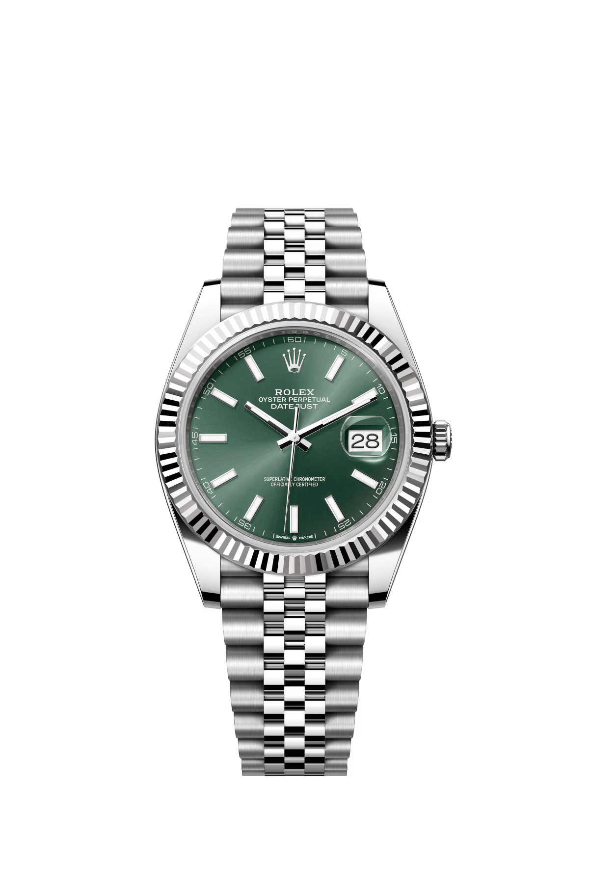 The Oyster Perpetual Datejust 41 is available in white gold and Oystersteel with a mint green dial and an Oyster bracelet. -m126334-0027