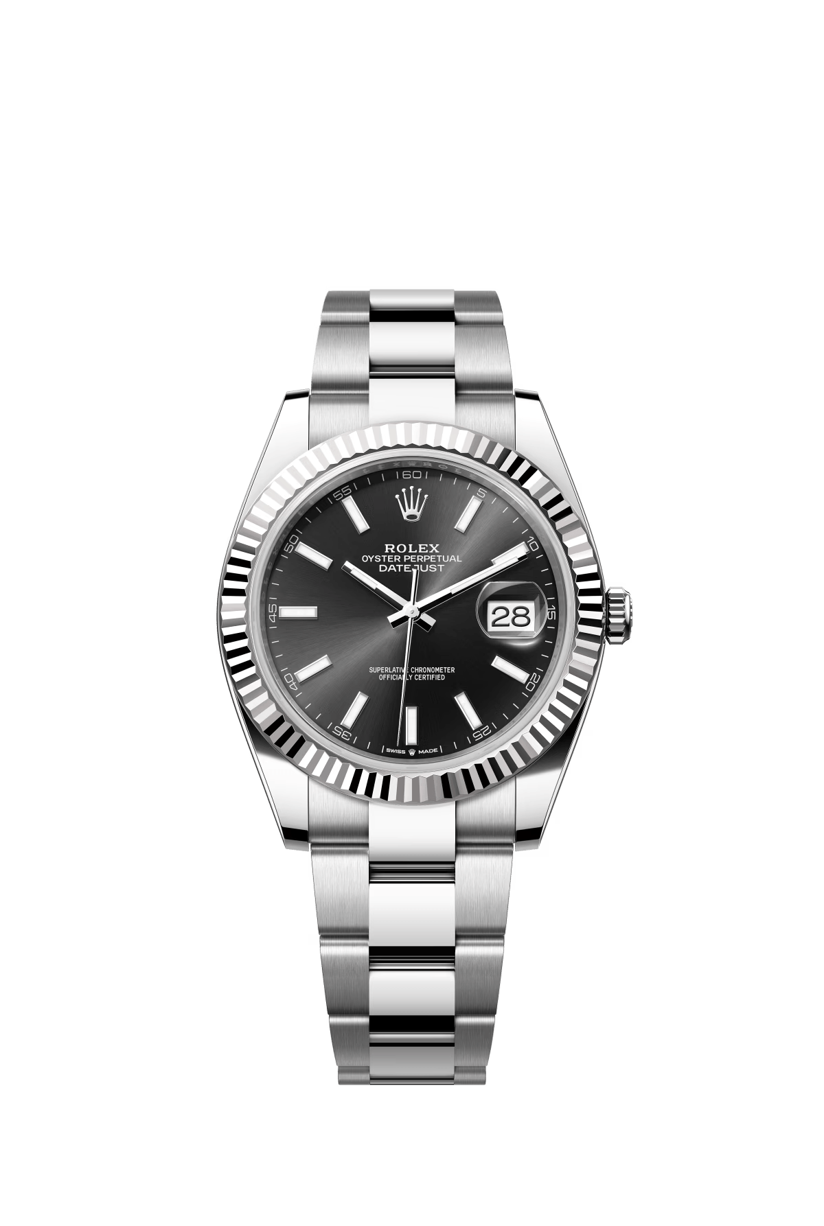 The Oyster Perpetual Datejust 41 is available in white gold and Oystersteel with a slate-grey dial and an Oyster bracelet. -m126334-0013