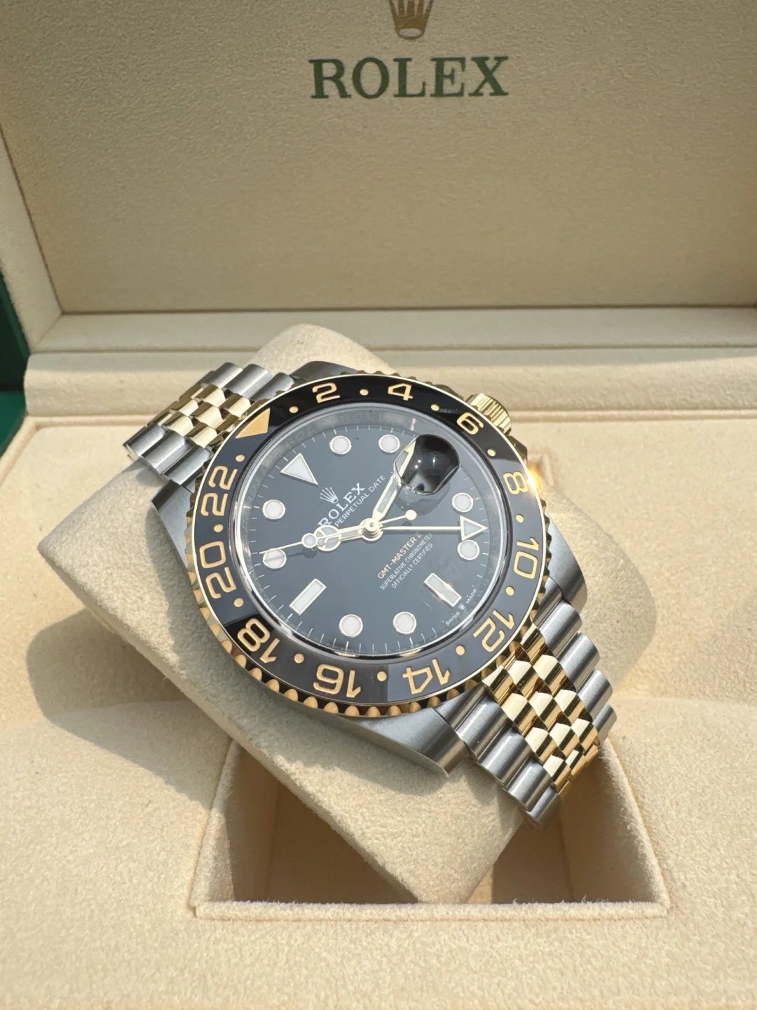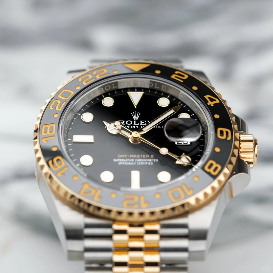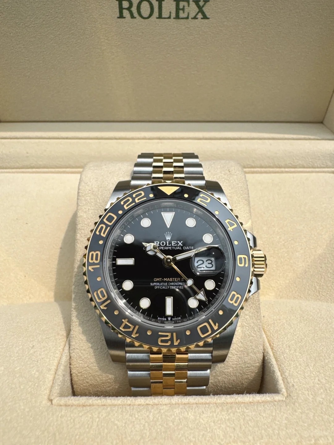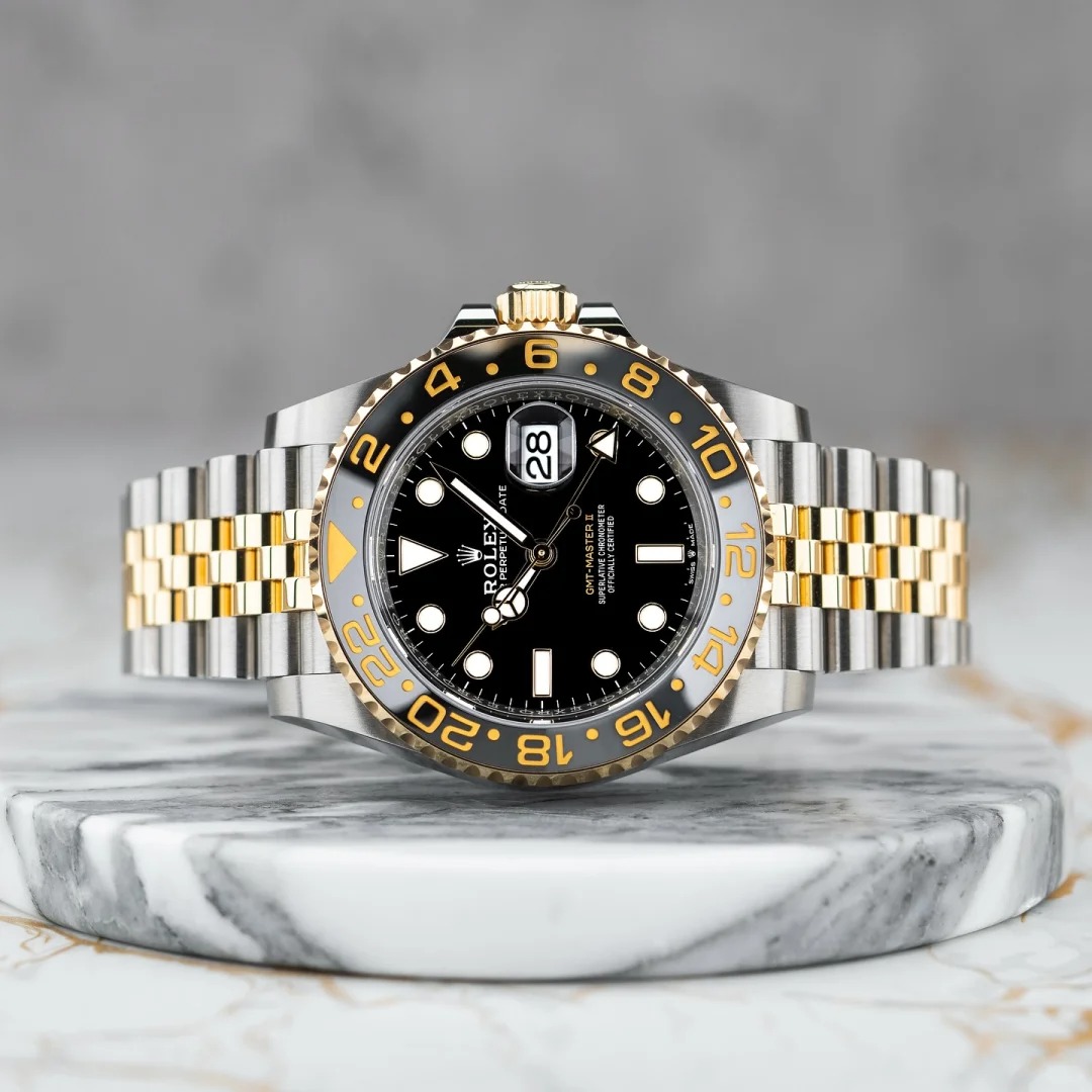The Oyster Perpetual GMT-Master II in Oystersteel and yellow gold with a black dial and a Jubilee bracelet.