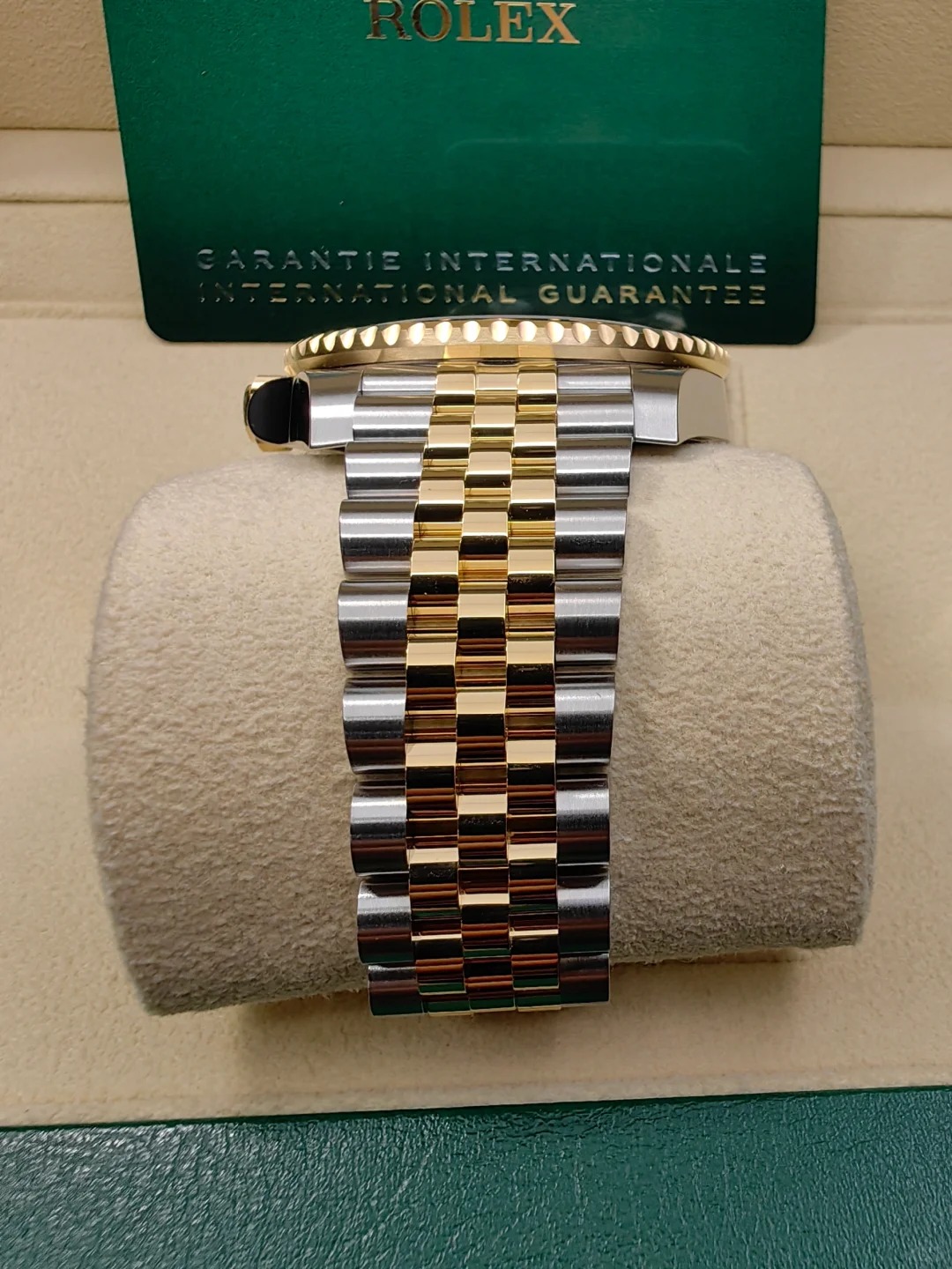• The Oyster Perpetual GMT-Master II is available in yellow gold and Oystersteel with a black dial and a Jubilee bracelet. -m126713grnr-0001 40mm