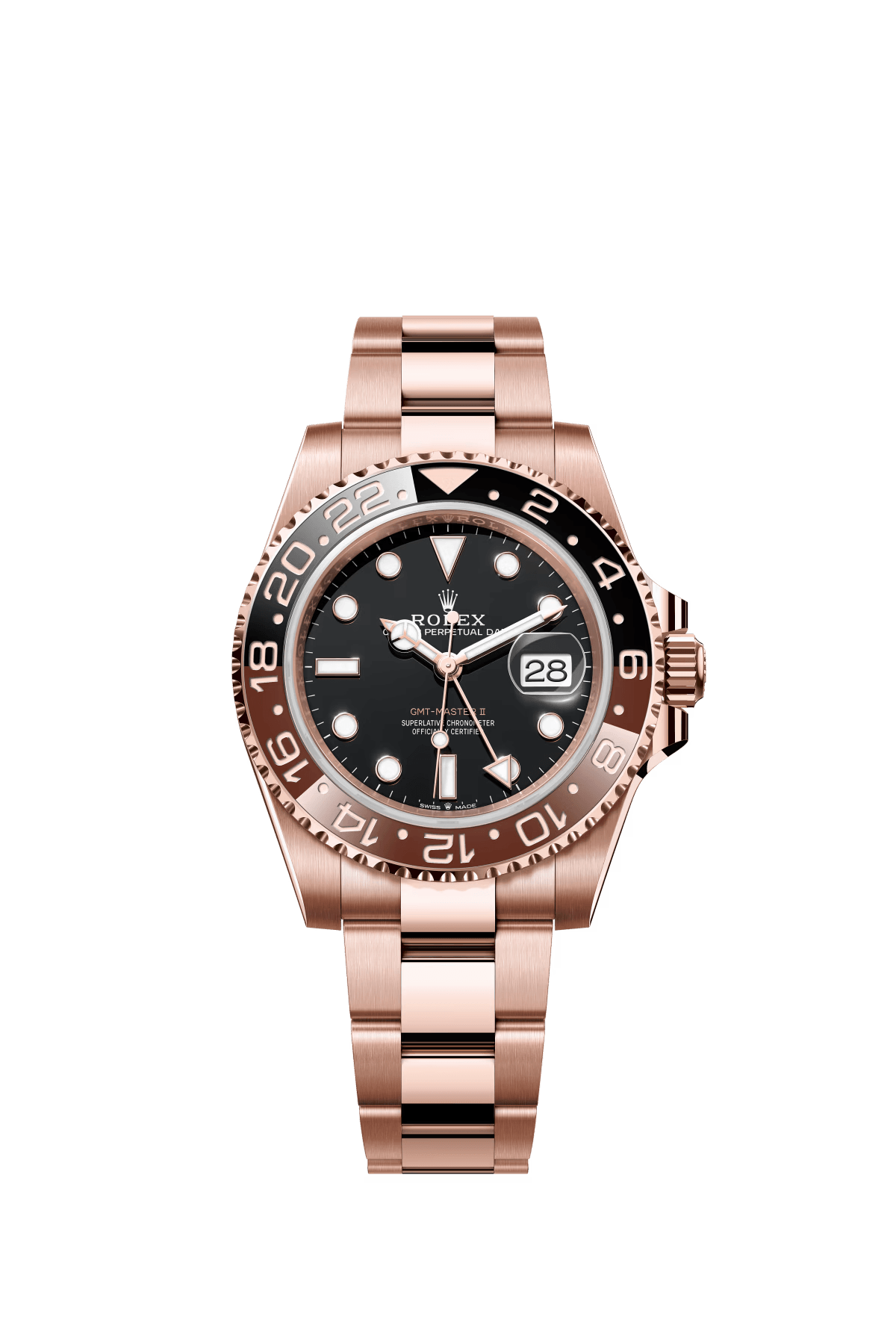 The Oyster Perpetual GMT-Master II is available in Everose gold and Oyster steel with a black dial and Oyster bracelet. -m126711chnr-0002 40mm