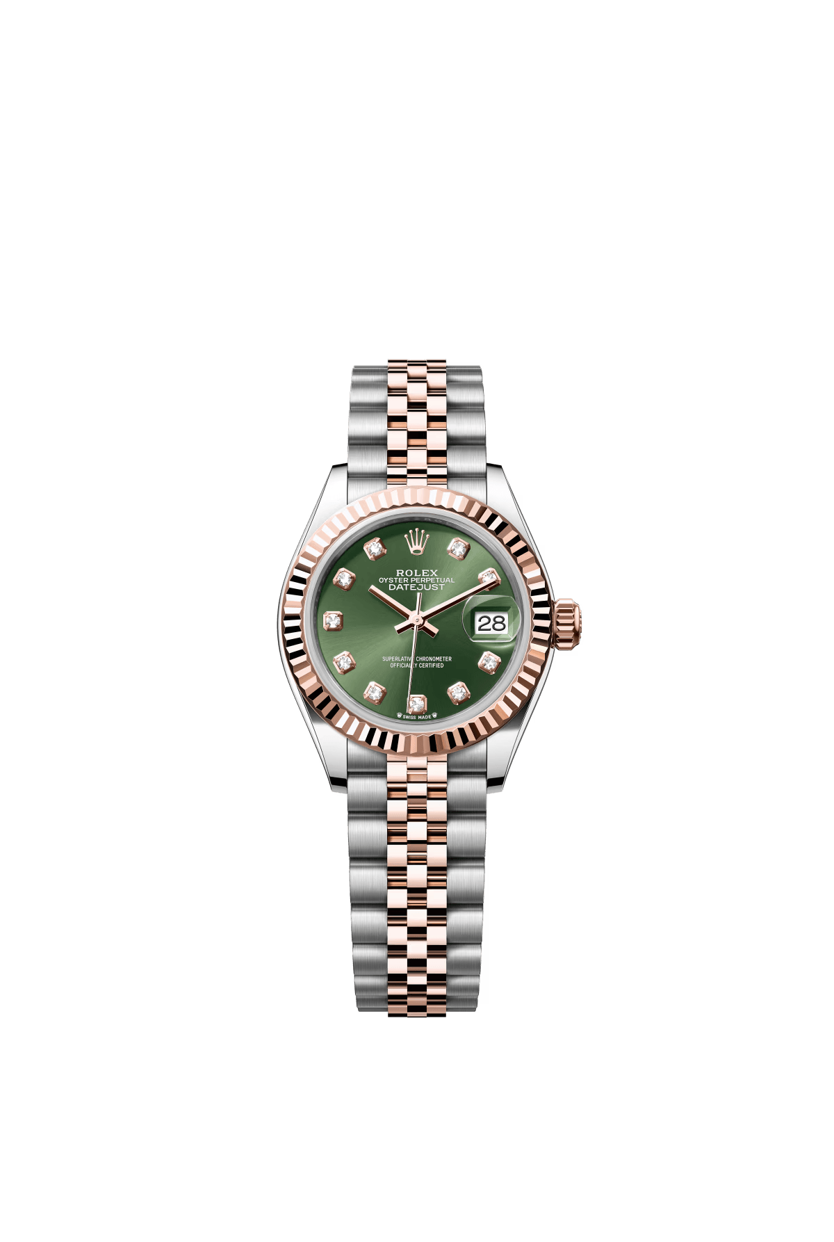 The Oyster Perpetual Lady-Datejust in Everose gold and Oystersteel with a diamond-set olive green dial and an Oyster bracelet. -m279381rbr-0008 28mm