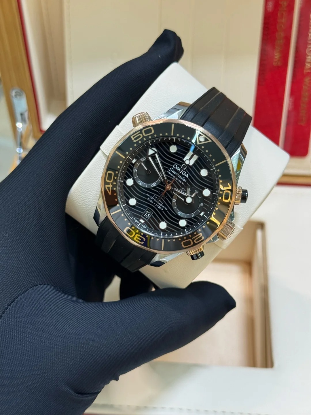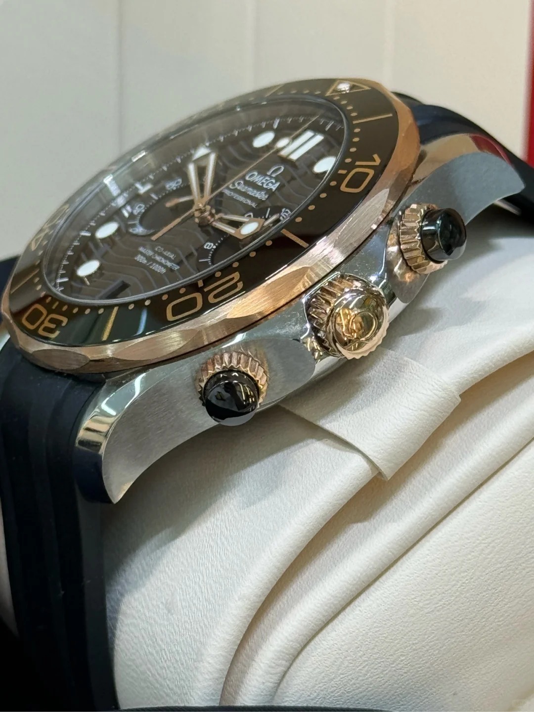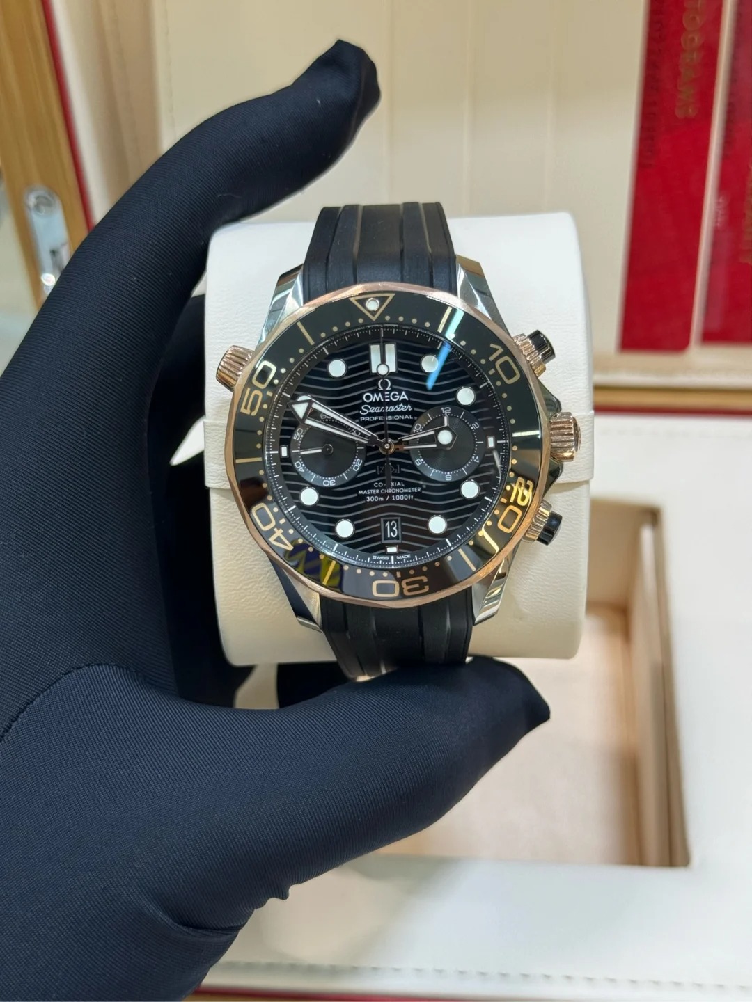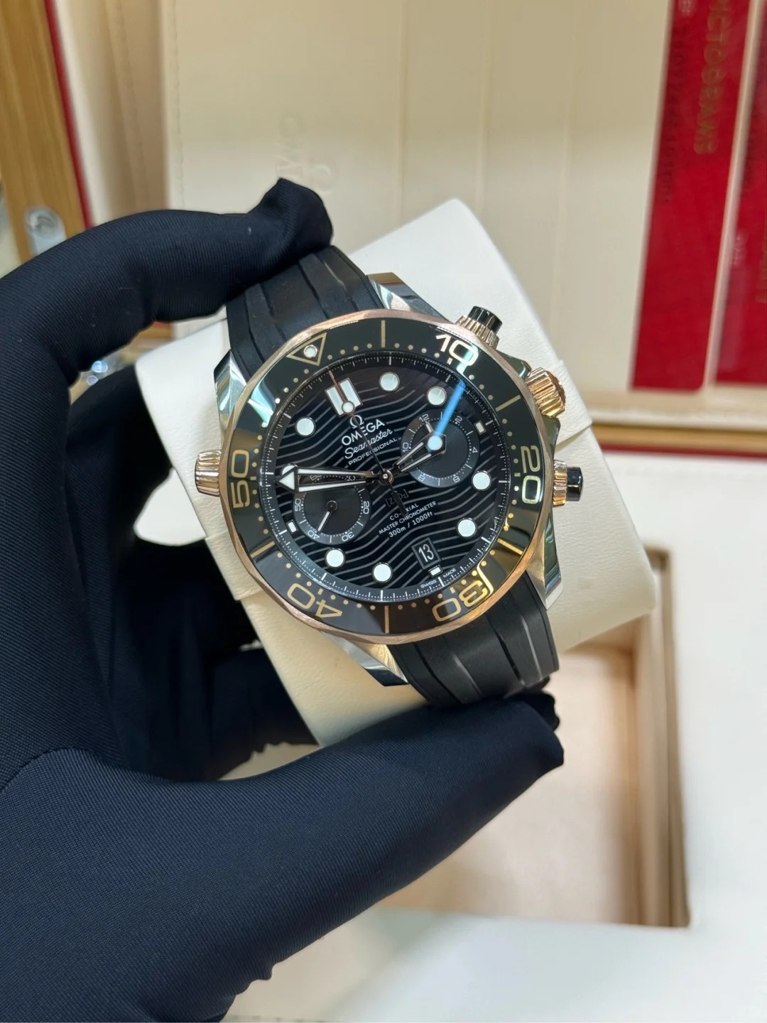 • Seamaster Diver 300M 44 mm, stainless steel - Sedna™™18k gold case with rubber strap - 210.22.44.51.01.001