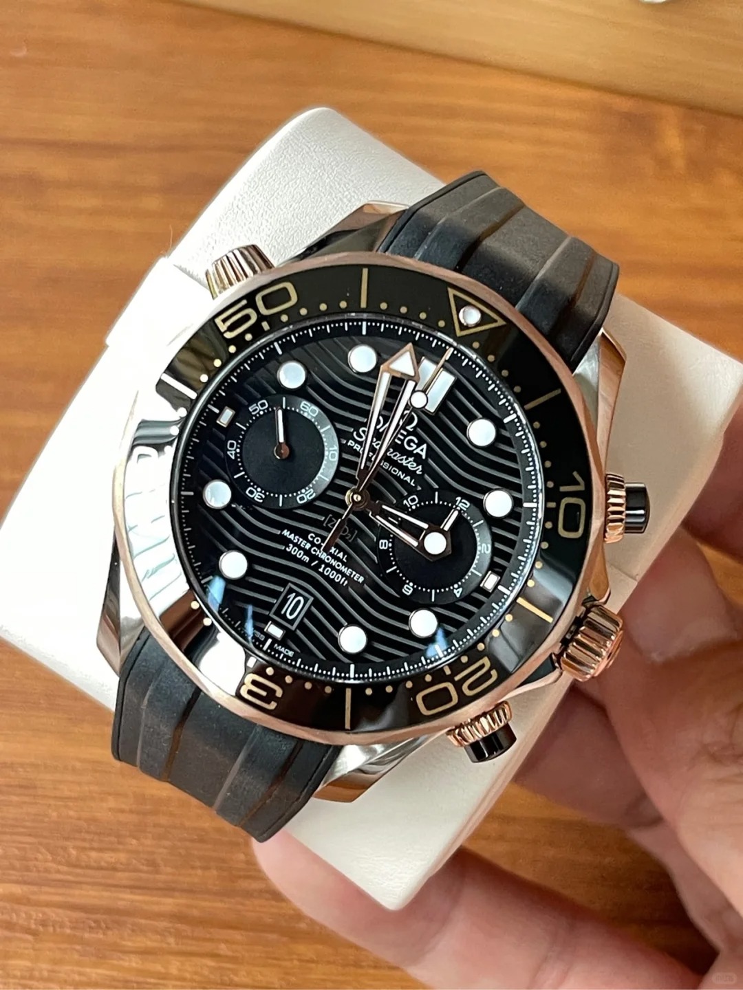 Seamaster Diver 300M 44 mm, stainless steel - Sedna™™18k gold case with rubber strap - 210.22.44.51.01.001