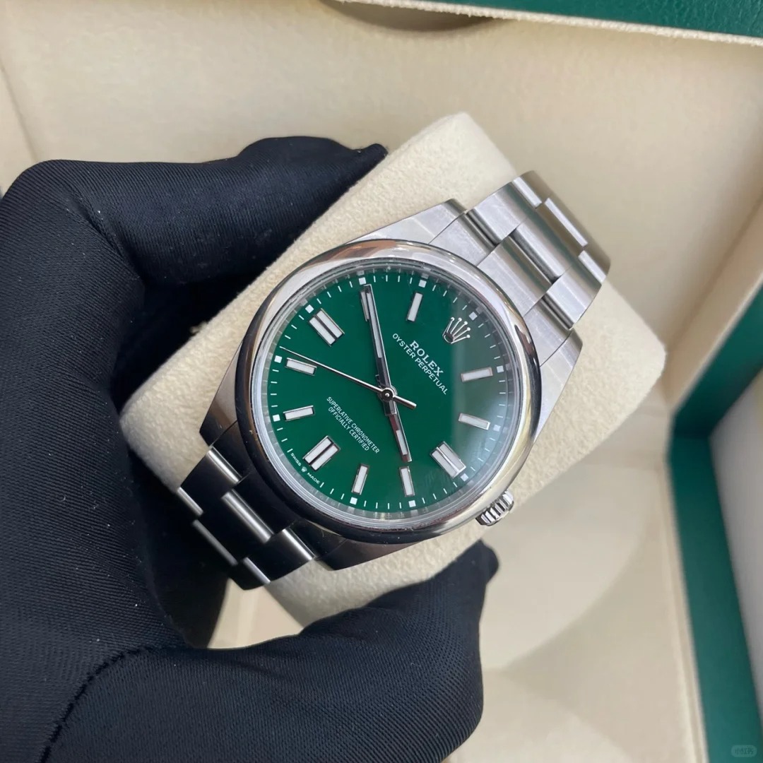 The Oyster Perpetual 41 with a green dial and an Oyster bracelet.