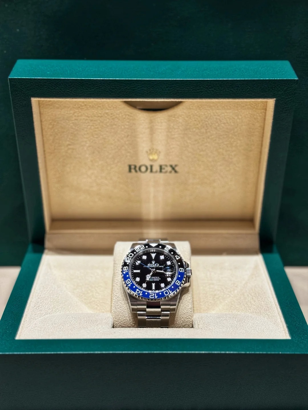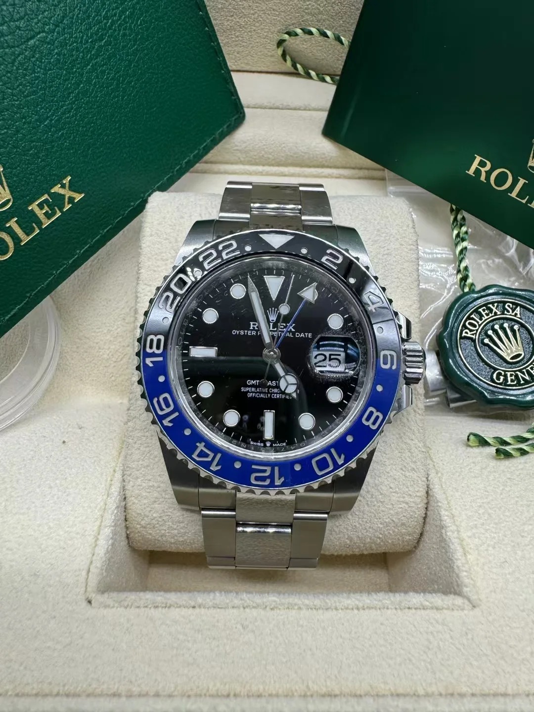 The Oyster Perpetual GMT-Master II is made of Oyster steel with a black dial and an Oyster bracelet. -m126710blnr-0003 40mm