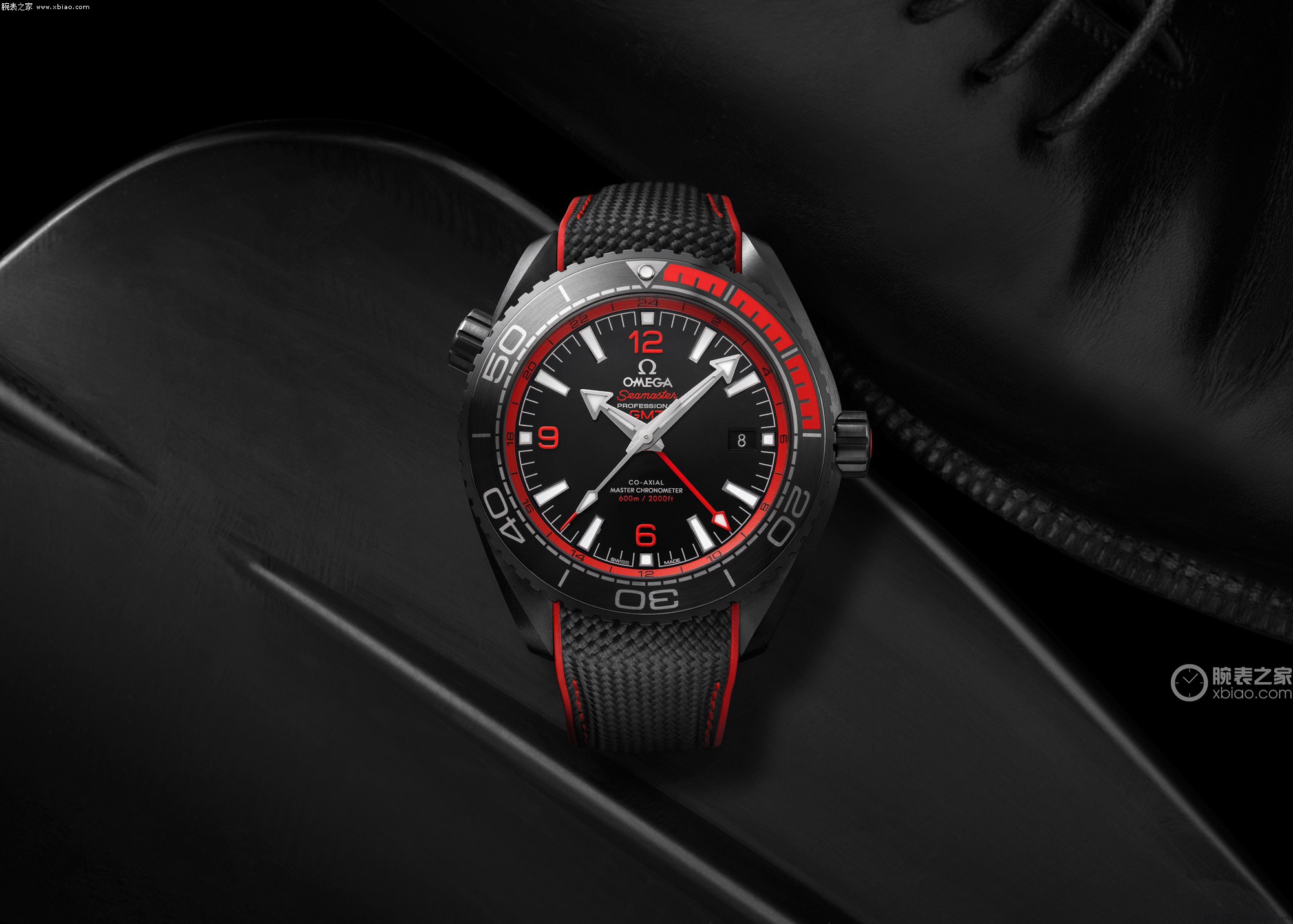 The black ceramic dial features a GMT bezel with red Arabic numerals, while the hands and indexes are made of 18K white gold with a white Super-LumiNova finish. Another OMEGA innovation is the directional caseback, which allows the engraving to be in place, made possible by the use of OMEGA's new ceramic "Naiad Lock".