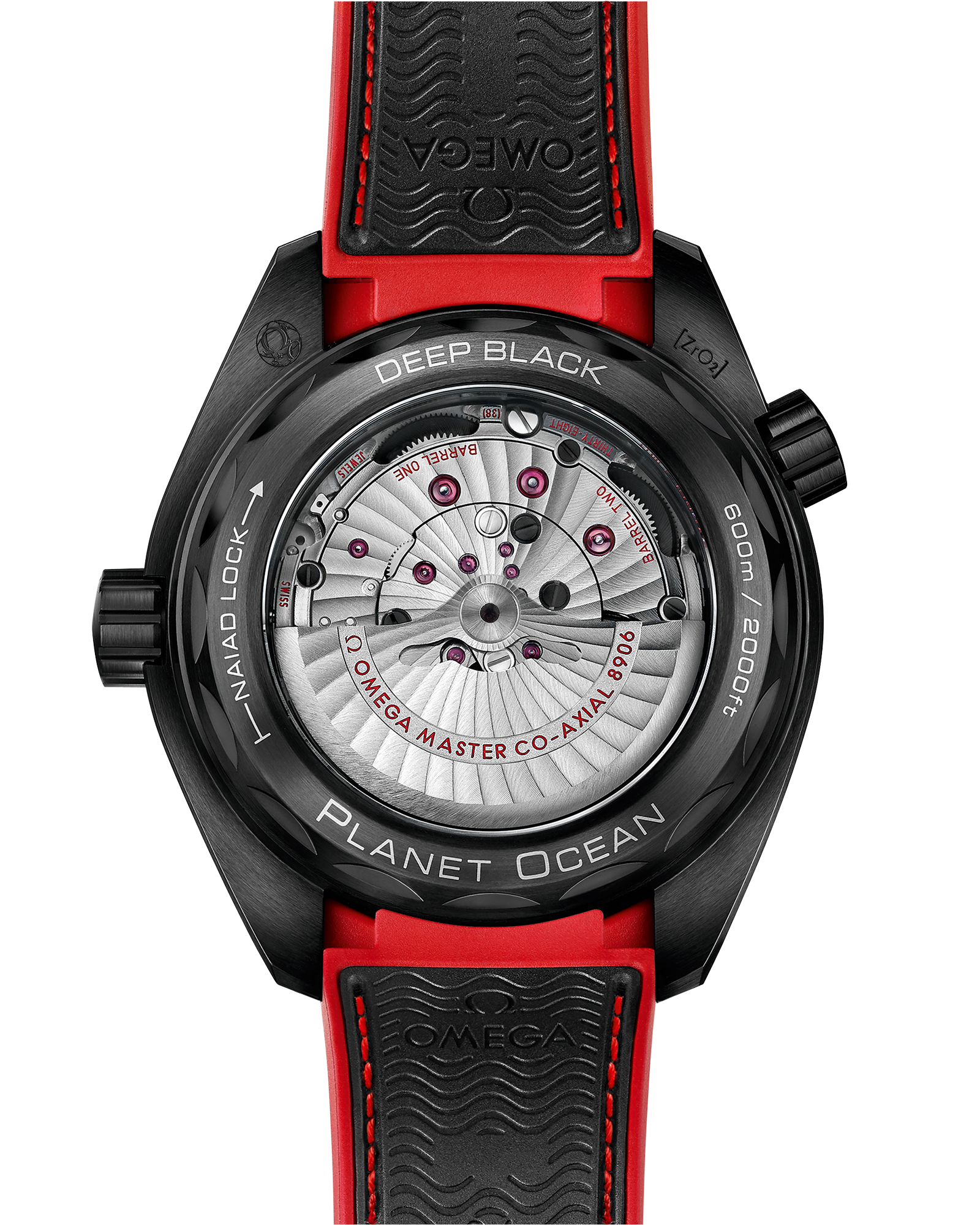 Other design features include a screw-down case back with a coveolar motif and a black rubber strap with red stitching and antimicrobial paint. Water-resistant to 60 bar pressure, the Planet Ocean Black is powered by the OMEGA Co-Axial Master Chronometer Calibre 8906. To achieve Master Chronometer certification, the watch has undergone eight rigorous tests set by the Switzerland Federal Institute of Metrology (METAS).