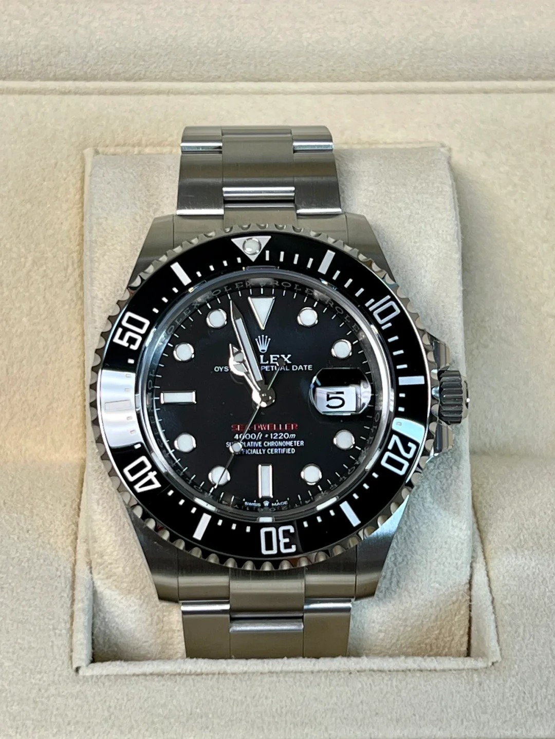 The watch is unworn and comes complete with full set of original accessories, such as watch box, warranty card dated recently, booklets and manuals.