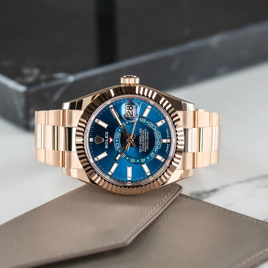 • The Oyster Perpetual Sky-Dweller in 18-carat Everose gold with a turquoise dial and Oyster bracelet. -m336935-0001 42mm