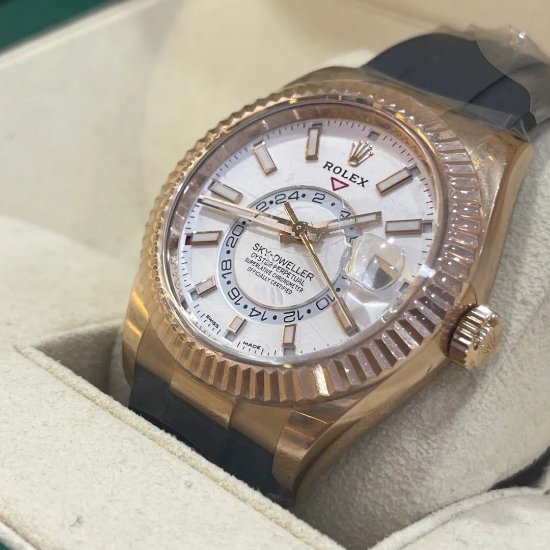 The Oyster Perpetual Sky-Dweller in 18-carat Everose gold with a mellow white dial and Oyster bracelet. -m336935-0003 42mm